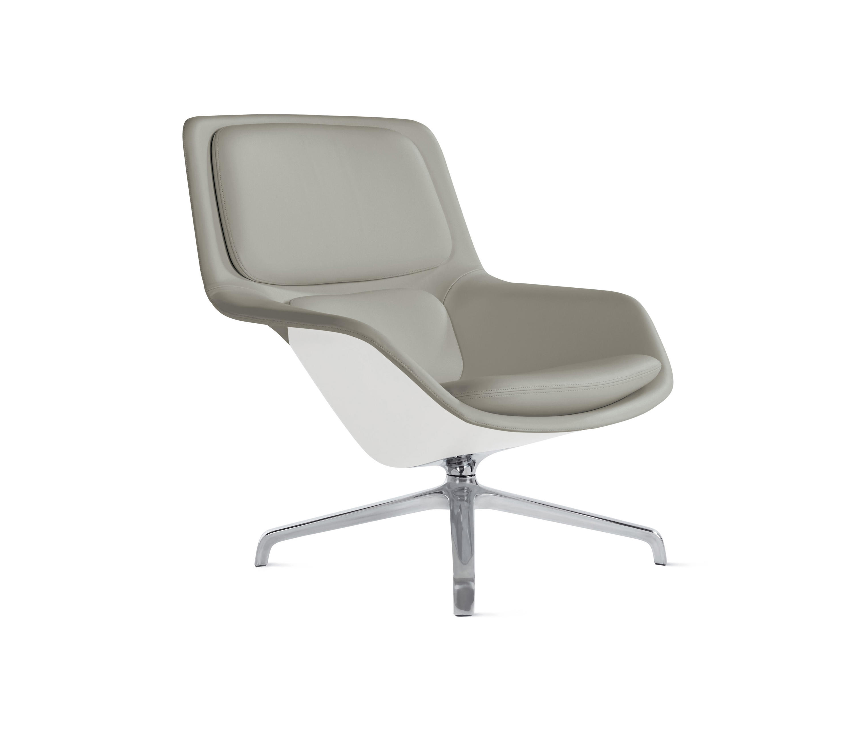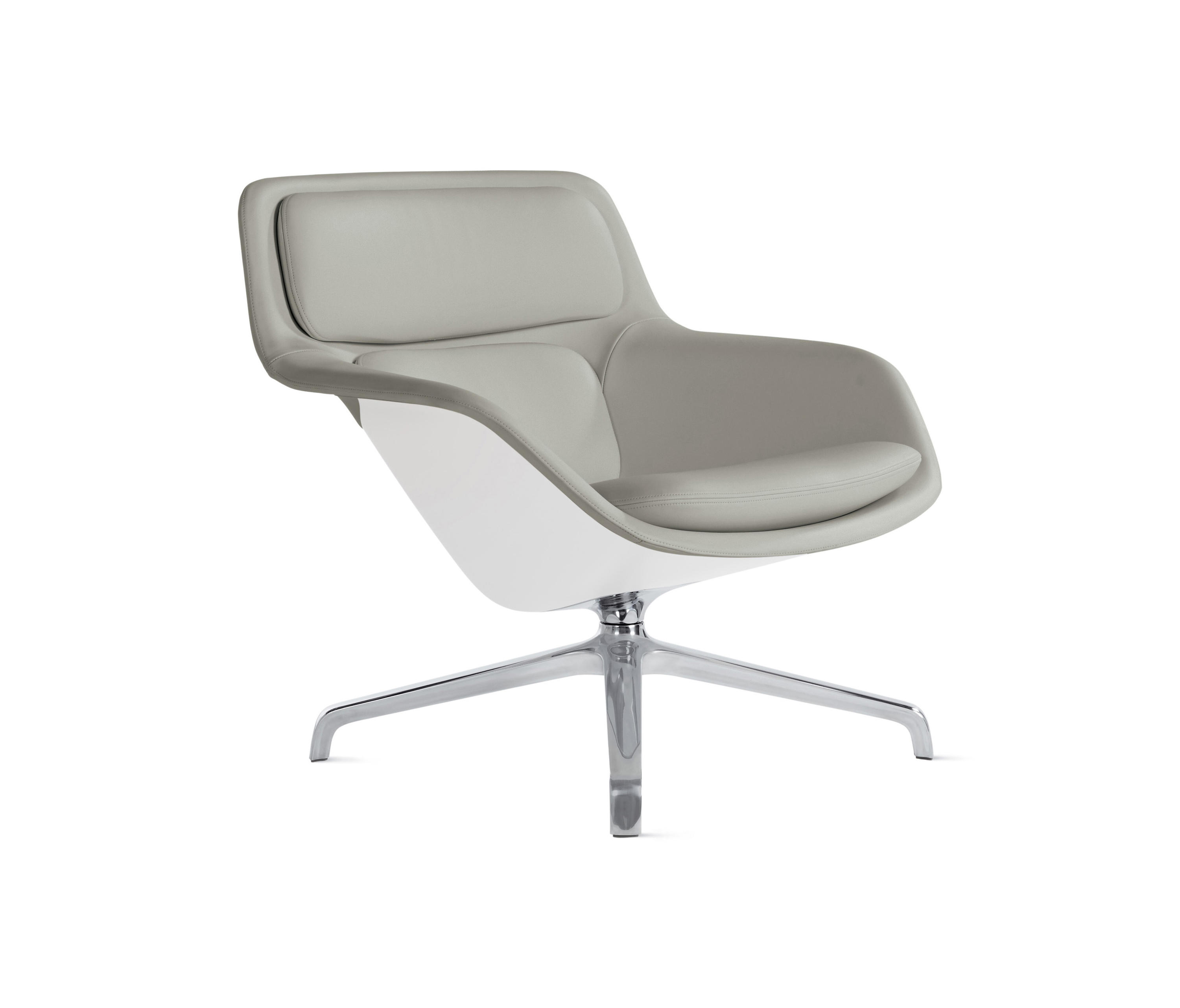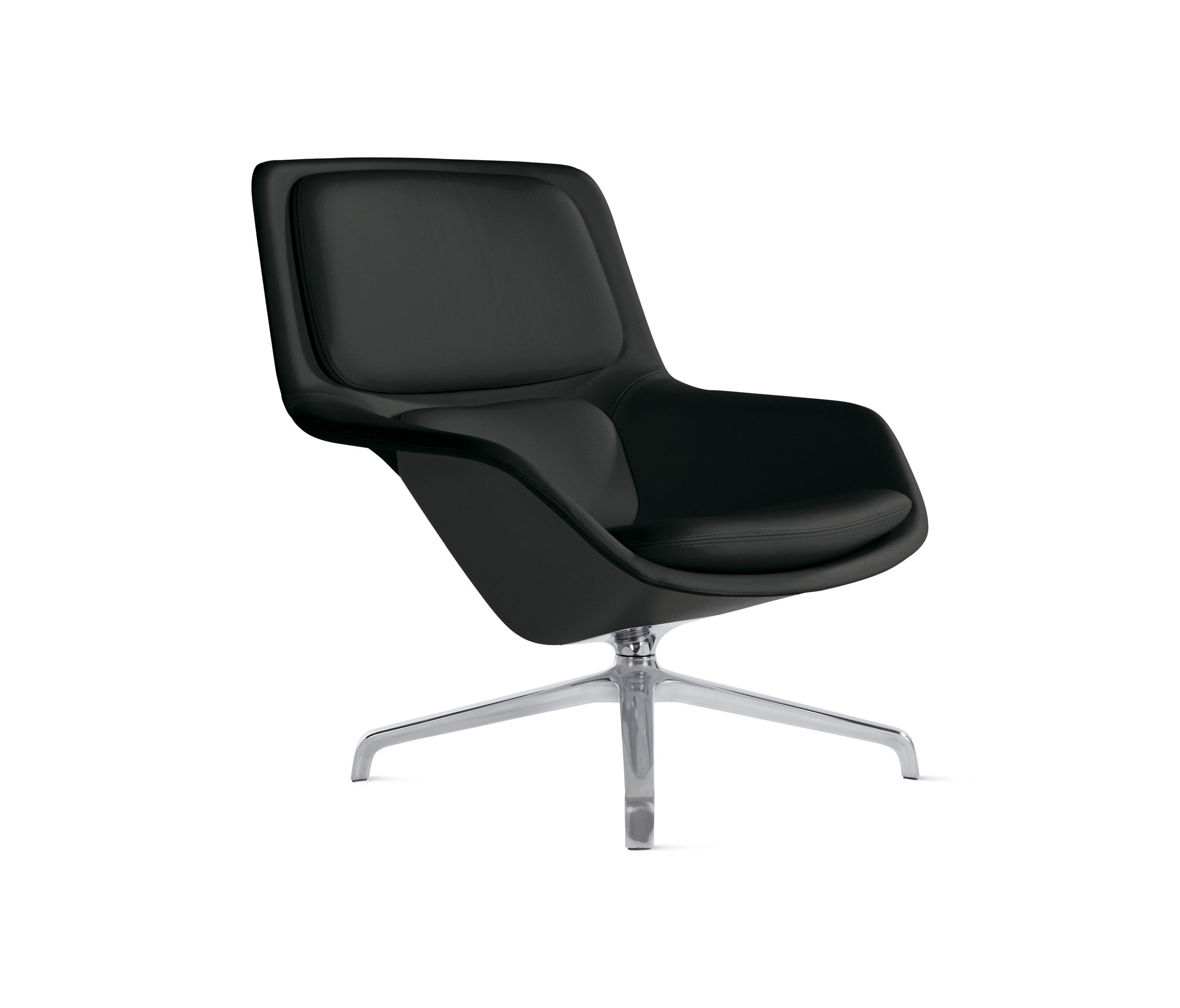 Striad能提供低、中、高三种靠背的款式,其中每款都可以选择四星自动返回底座或者固定的四腿钢丝底座,同时还能提供诸多饰面和软垫选项,适合与多种风格的空间搭配使用。