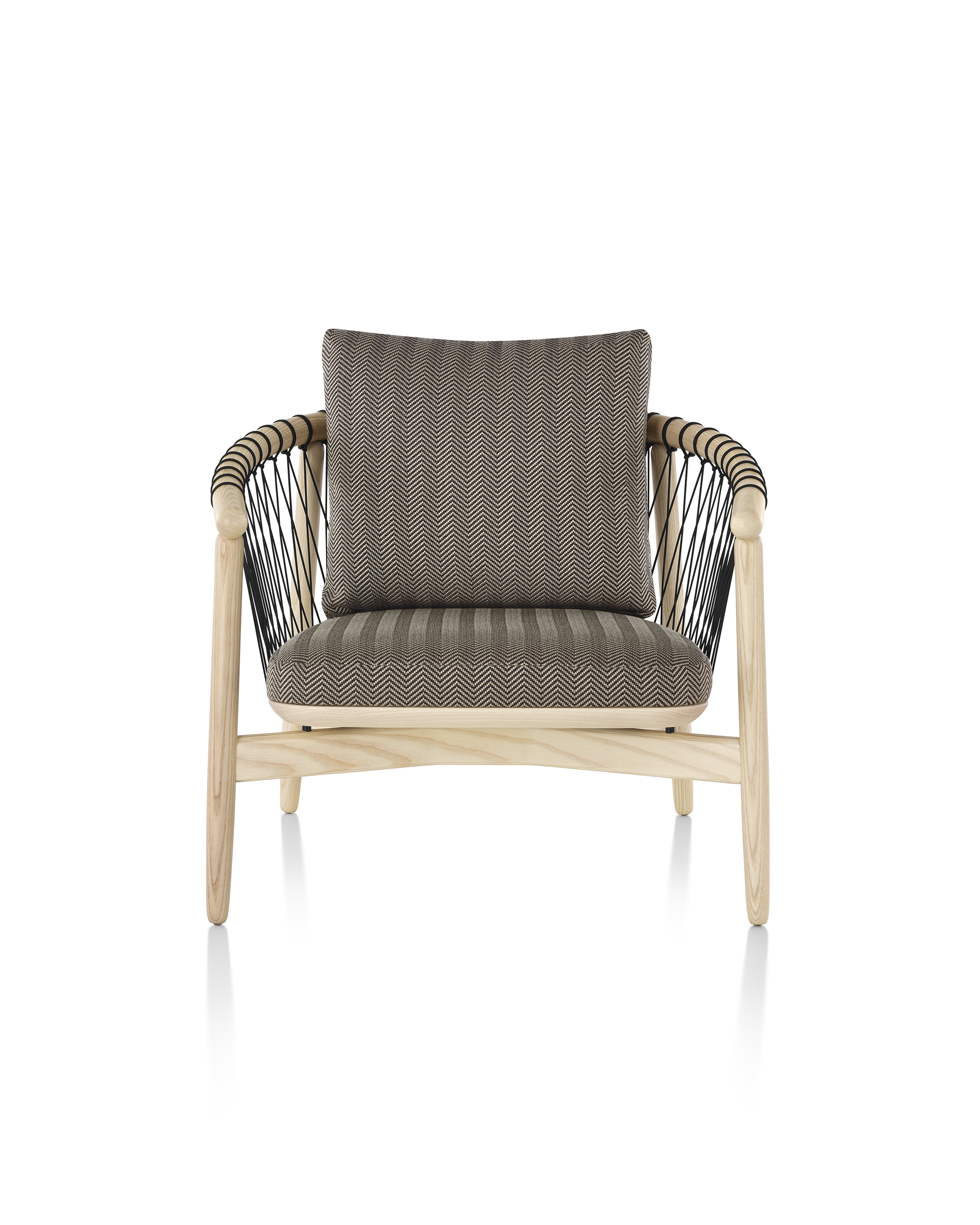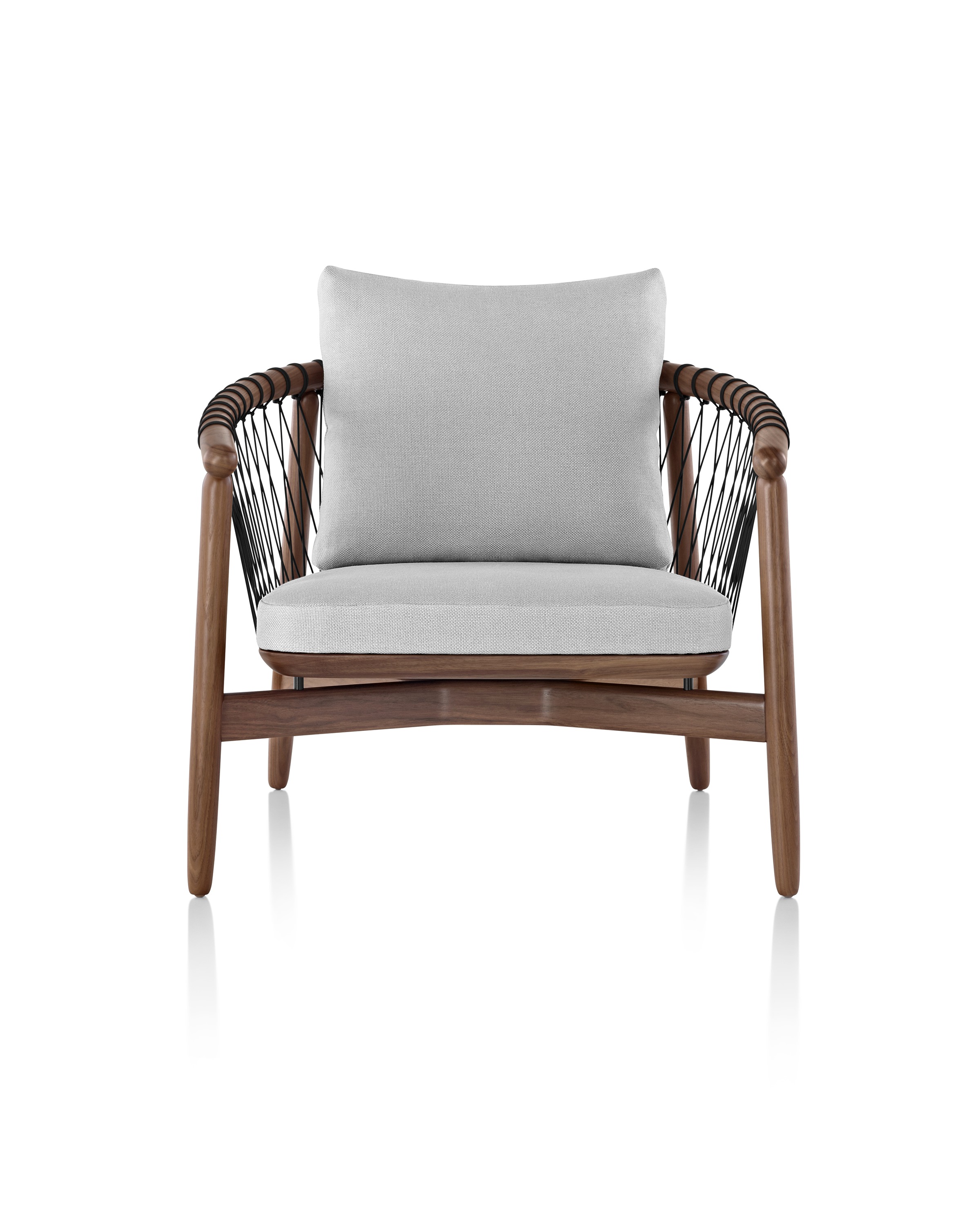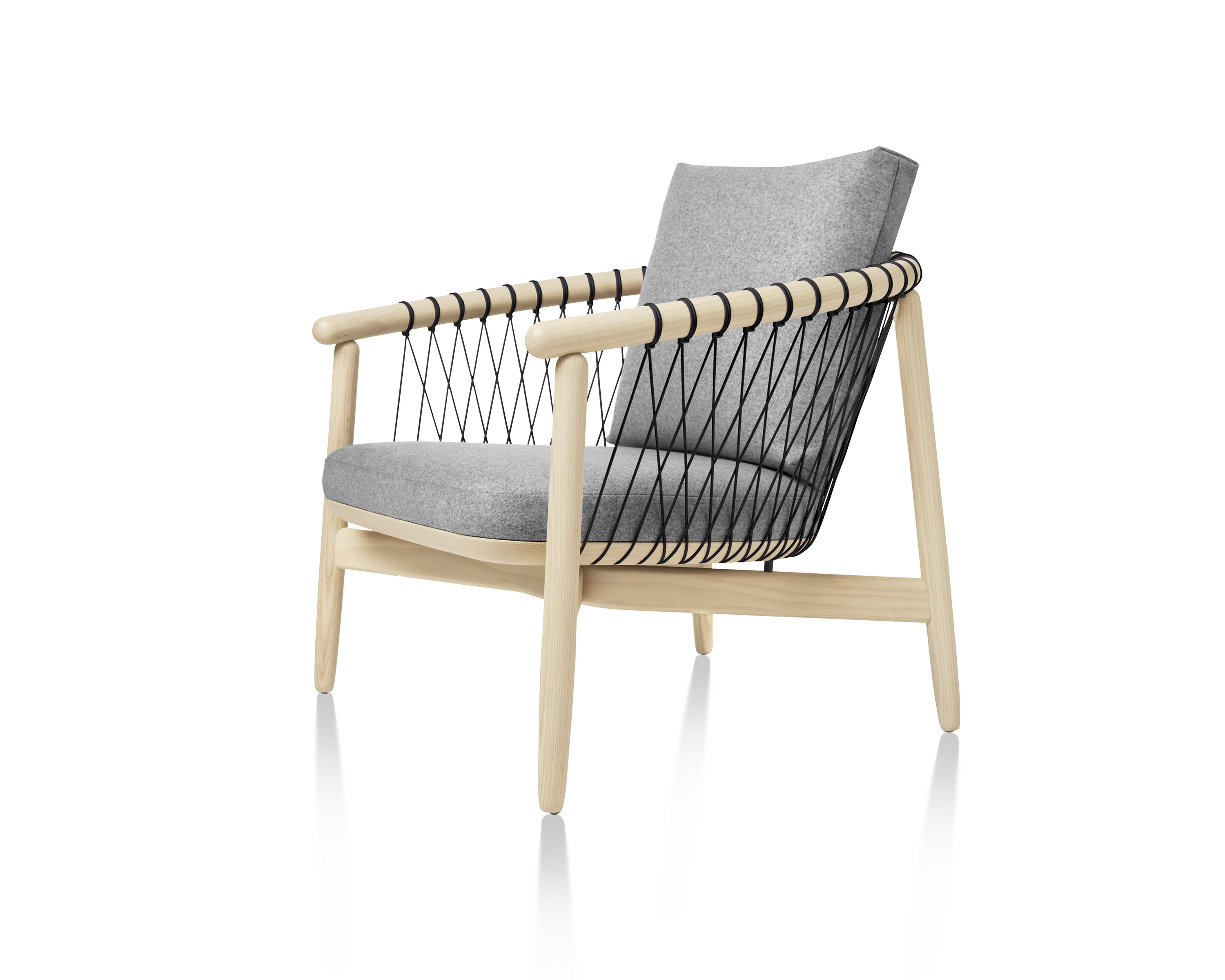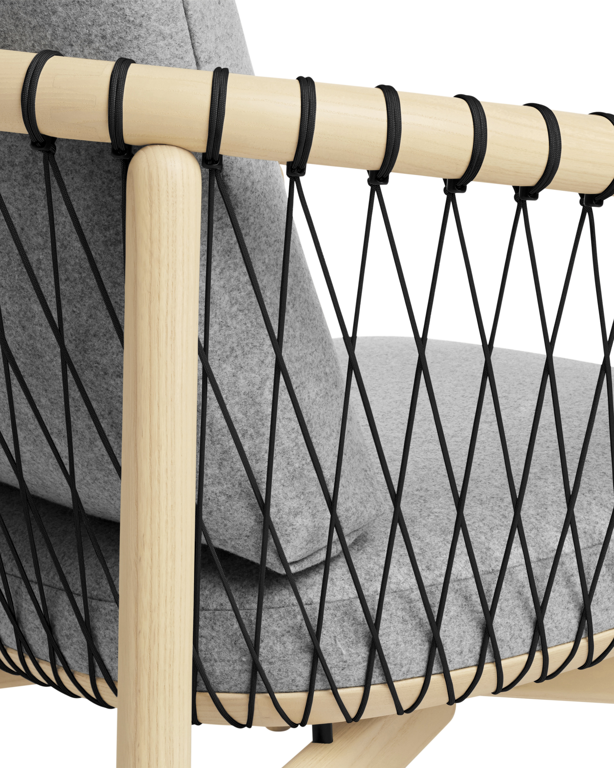 在最大程度上以创造性的方式使用最少的材料,十字头椅采用了手工和技术来达到迷人的精致效果。这把椅子既轻便又透明,非常容易拉起来与桌子边的人聊天,也很容易在鸡尾酒桌周围放松。降落伞绳索有四种颜色可供选择;在一系列盖革纺织品中,框架要么是灰,要么是胡桃。