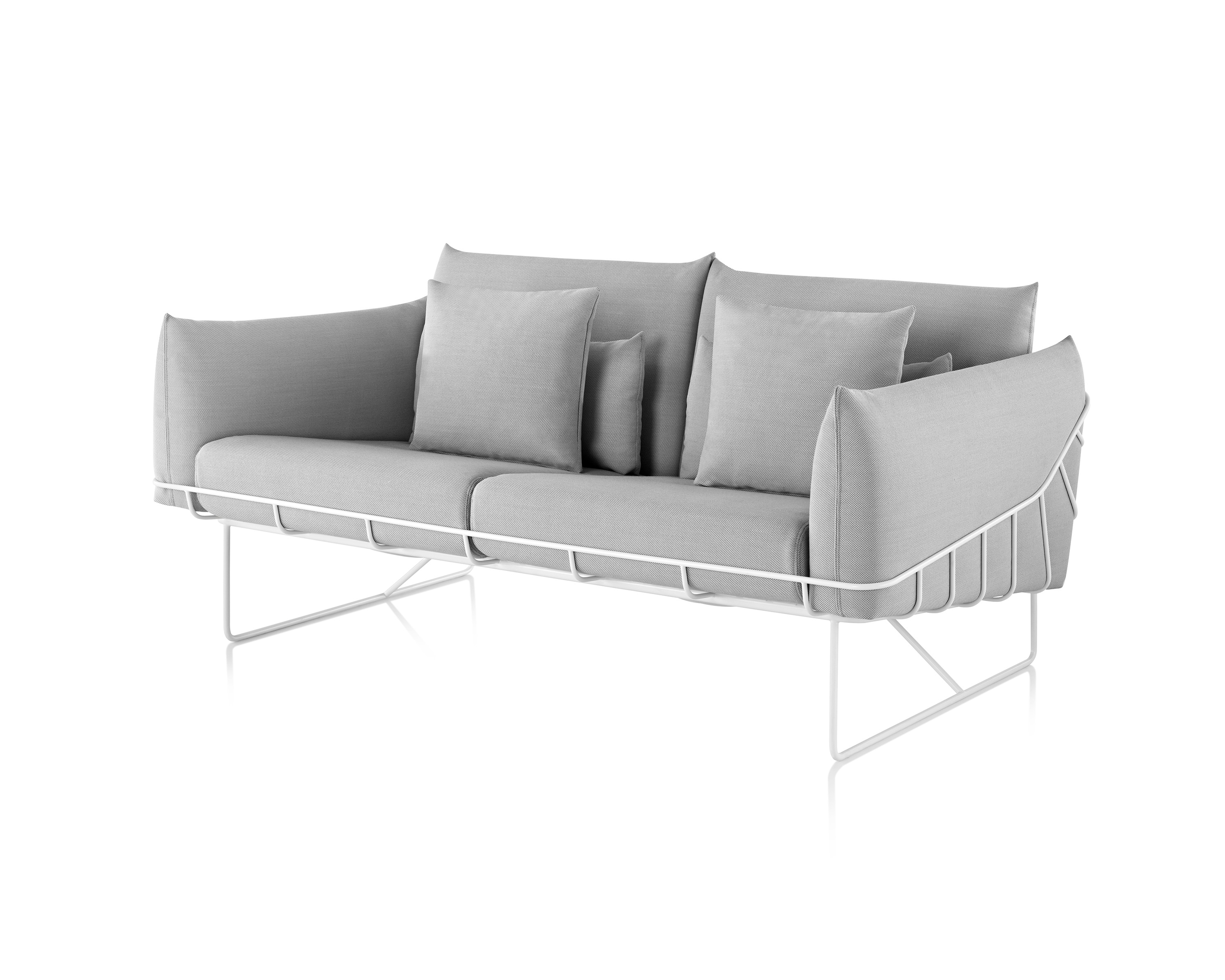 从视觉上说,柔软和体积包含在一个正式的框架,线框沙发组例证了一个反复出现的主题山姆赫克特和金科林:对比紧张。该设计的外部结构是由钢丝形成的——这是赫尔曼米勒经典设计中长期使用的材料,因为其强度和耐久性。车架内的坐垫是轮廓分明的,赫尔曼米勒(Herman Miller)最初为医疗行业开发的一种悬架技术让坐垫更加舒适。腰椎和抱枕是祭品的全部。轻便,大小不一,多用途的座椅可以轻松地变换位置,以满足不断变化的空间需求,以及在其中工作和放松的人。海克特和科林的设计体现了我们今天的生活方式。选择包括白色或黑色框架与多个室内装潢选择在两人和三人座位的沙发