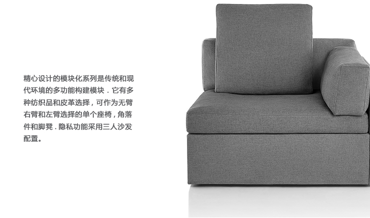 Module Lounge Seating适用于住宅和商业环境,通过附加选项使其更加有趣:隐私功能。为了帮助解决开放式平面图和公共区域的隐私问题,BassamFellows集成了从Module Lounge Seating现有框架向上延伸的软垫面板。这款面板柔软舒适,高42英寸,环绕着安静的声音。此功能对于私人电话,协作或对话特别有用。