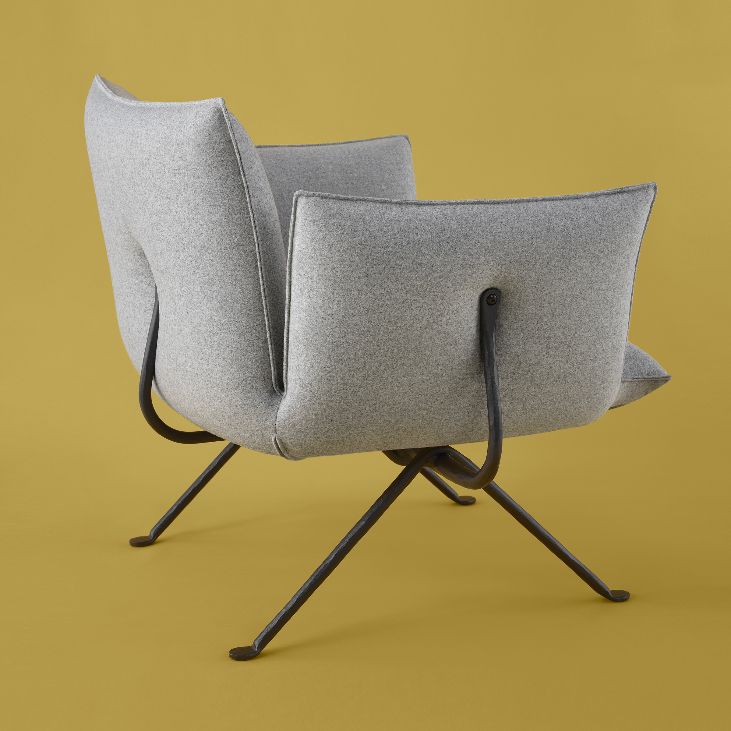 在桌子、椅子和凳子之后,收藏范围进一步扩大,包括一系列配件、一张低矮的椅子、一张双人长椅和一组软垫件(扶手椅、脚凳、两张和三人沙发)。所有这些作品都有一个伪造的铁结构,具有几百年来传承下来的原材料的魅力,充满活力,这些微小的缺陷使这个收藏中的每一件物品都与众不同,具有一种深刻的优雅和优雅的精神。