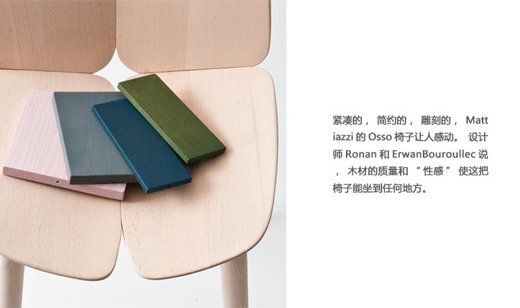 紧凑的,简约的,雕刻的,Mattiazzi的Osso椅子让人感动。设计师Ronan和ErwanBouroullec说,木材的质量和“性感”使这把椅子能坐到任何地方。高科技系统将座椅和背部的木板组装在一起,创造出与其美观相匹配的力量。