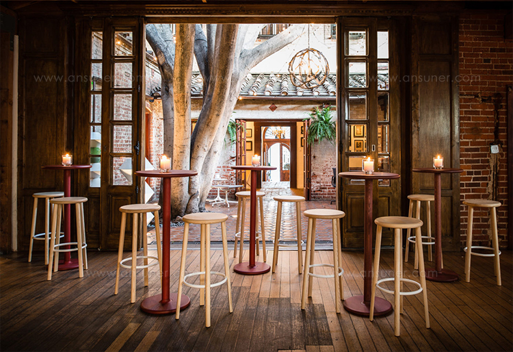 独奏桌,有一个圆形或方形的顶部,细长的单支架和圆形底座,
