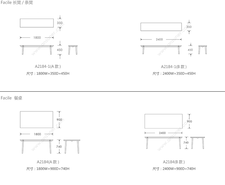 Facile 系列尺寸/示意图