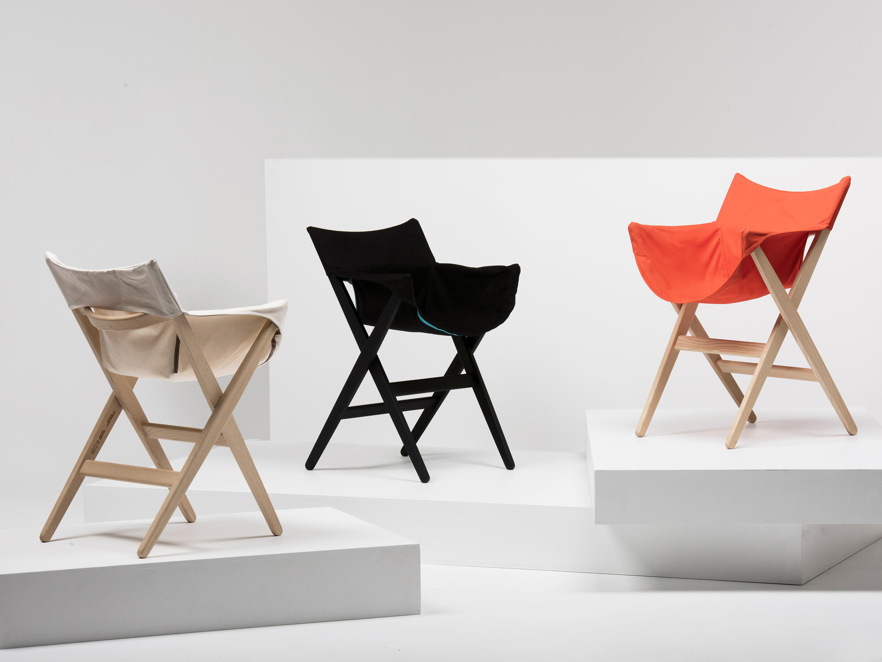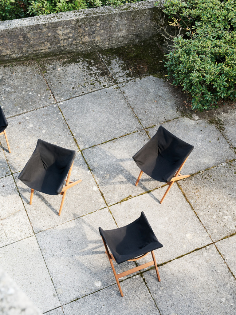 Fionda系列家具的特点是一个固体灰折叠框架与座椅制成