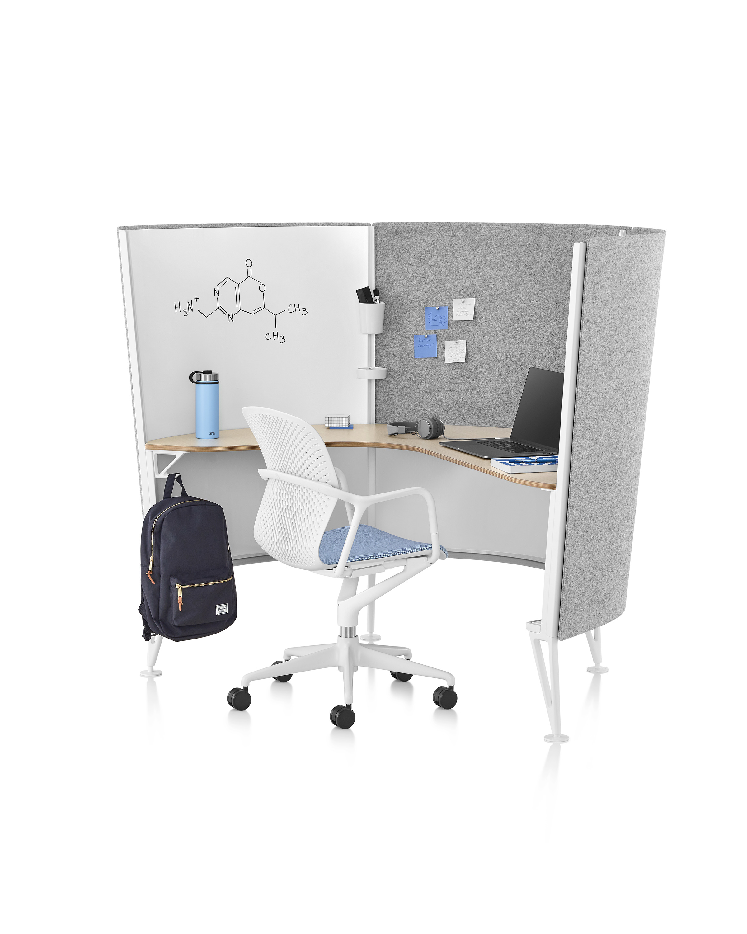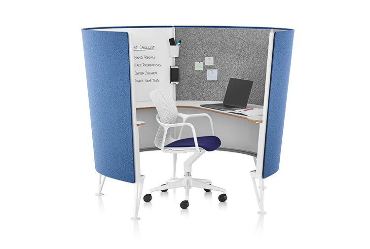 To bring their best thinking to their teams, people need time for focused work and contemplation. Prospect Solo Spaces are ideal for individual creative work or simply a place to settle in and tackle a few quick tasks. The round shape offers visual privacy—unique within an open floorplan—and the soft, sound-absorbing materials create a peaceful spot for working or studying.