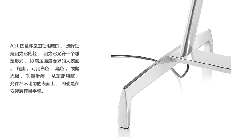 Leon Ransmeier设计的AGL桌子系列睿智亲切,引人动心,是Herman Miller Collection致力于打造兼具动态特性与恒久品质的全新委托设计的最佳典范。AGL桌子系列从航空学设计的高效性方面汲取灵感,对外形、比例和尺寸进行深思熟虑,最大限度地减少了材料的使用。