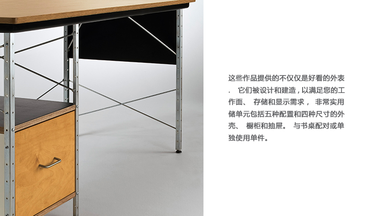 早在“模块化”和“高科技”进入设计词典之前,Charles和Ray Eames就开始使用工业生产技术来拓展设计的边界,创造出一种现代美学。这些办公桌和存储单元相辅相成,每个单元都可以单独使用。它们提供充足的存储、工作和显示空间。无论是在家里还是在办公室,它们现在看起来和1950年第一次推出时一样引人注目。