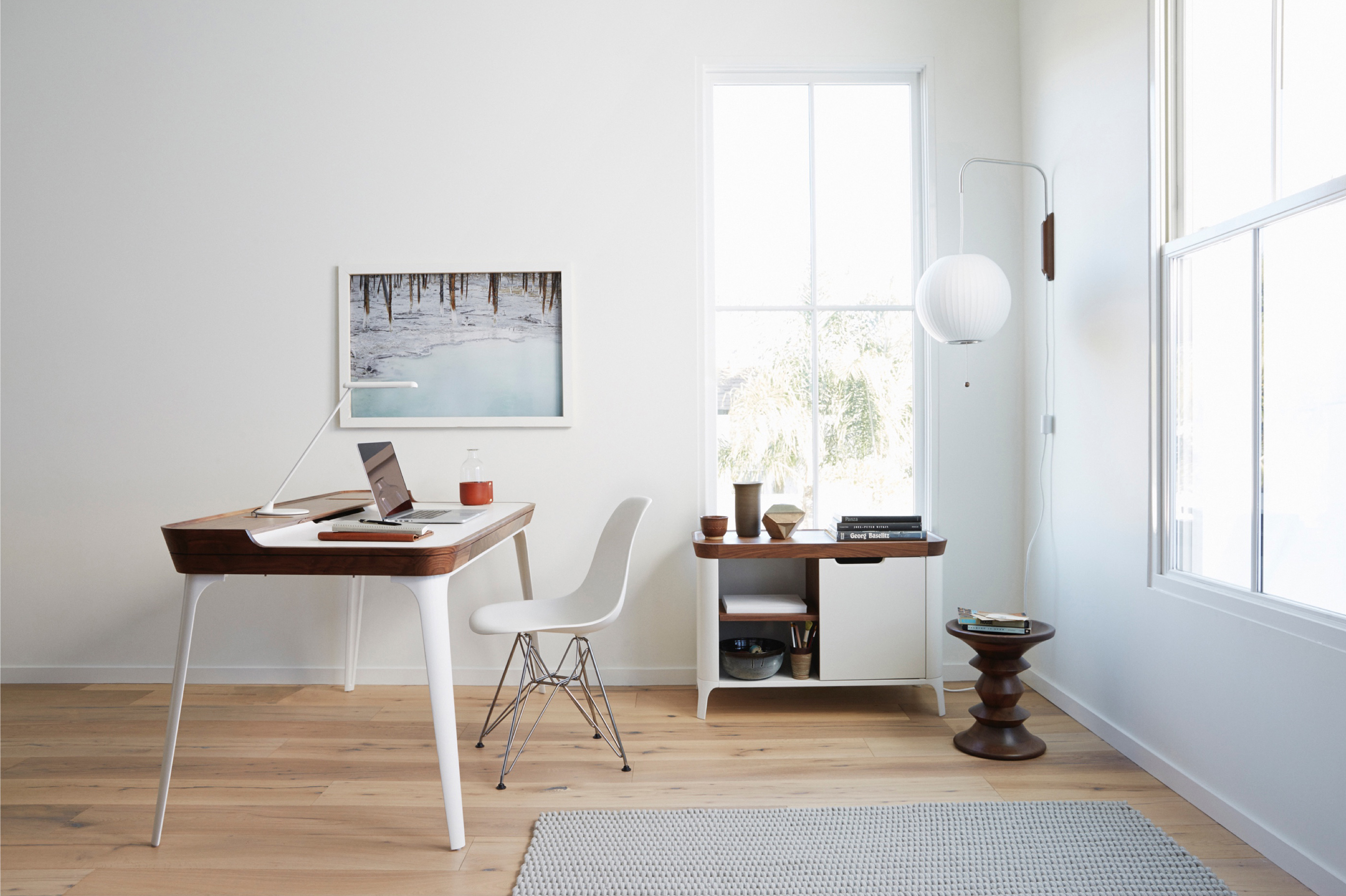 从优雅的木材和铝材组合到精心制作的细节,如软木衬里抽屉,Airia将美观与功能完美结合。 设计师Ayako Takase和Cutter Hutton的动机是设计一个“智能桌面,承认技术和我们在工作时积累的东西,但是以微妙,集成和直观的方式进行。”