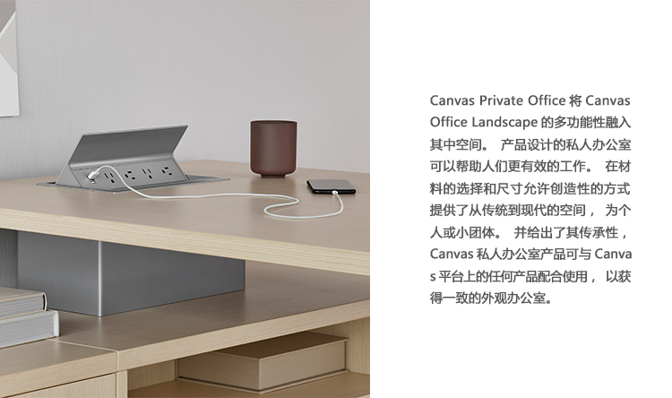Canvas Private Office将Canvas Office Landscape的多功能性带入封闭空间。 为私人办公室设计的产品可以帮助人们高效地工作。 材料和尺寸的选择允许创造性的方式来提供空间 - 从传统到现代,为个人或小团体。 鉴于其产品线,Canvas Private Office产品可与Canvas平台上的任何产品配合使用,在办公室内保持一致的外观。