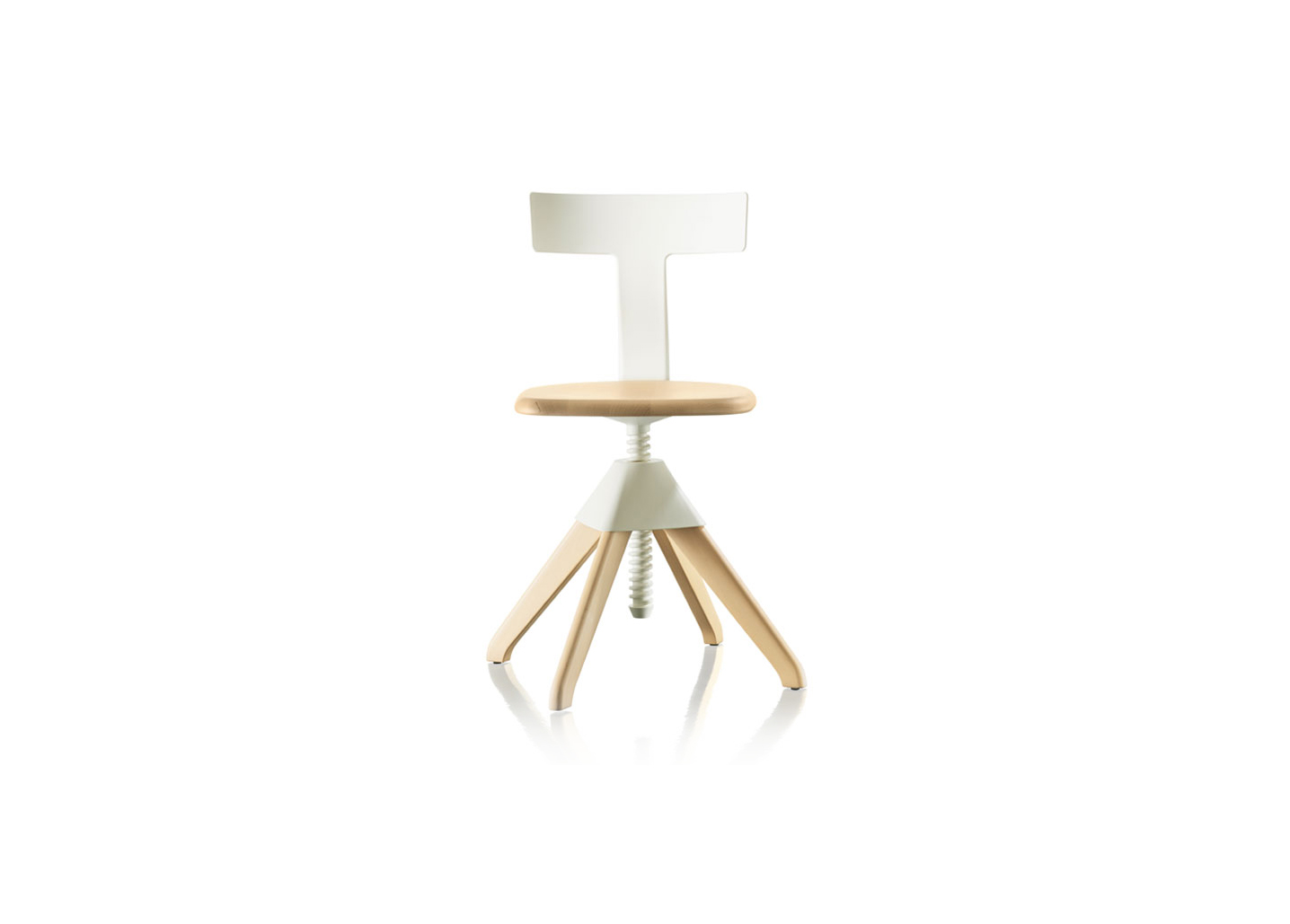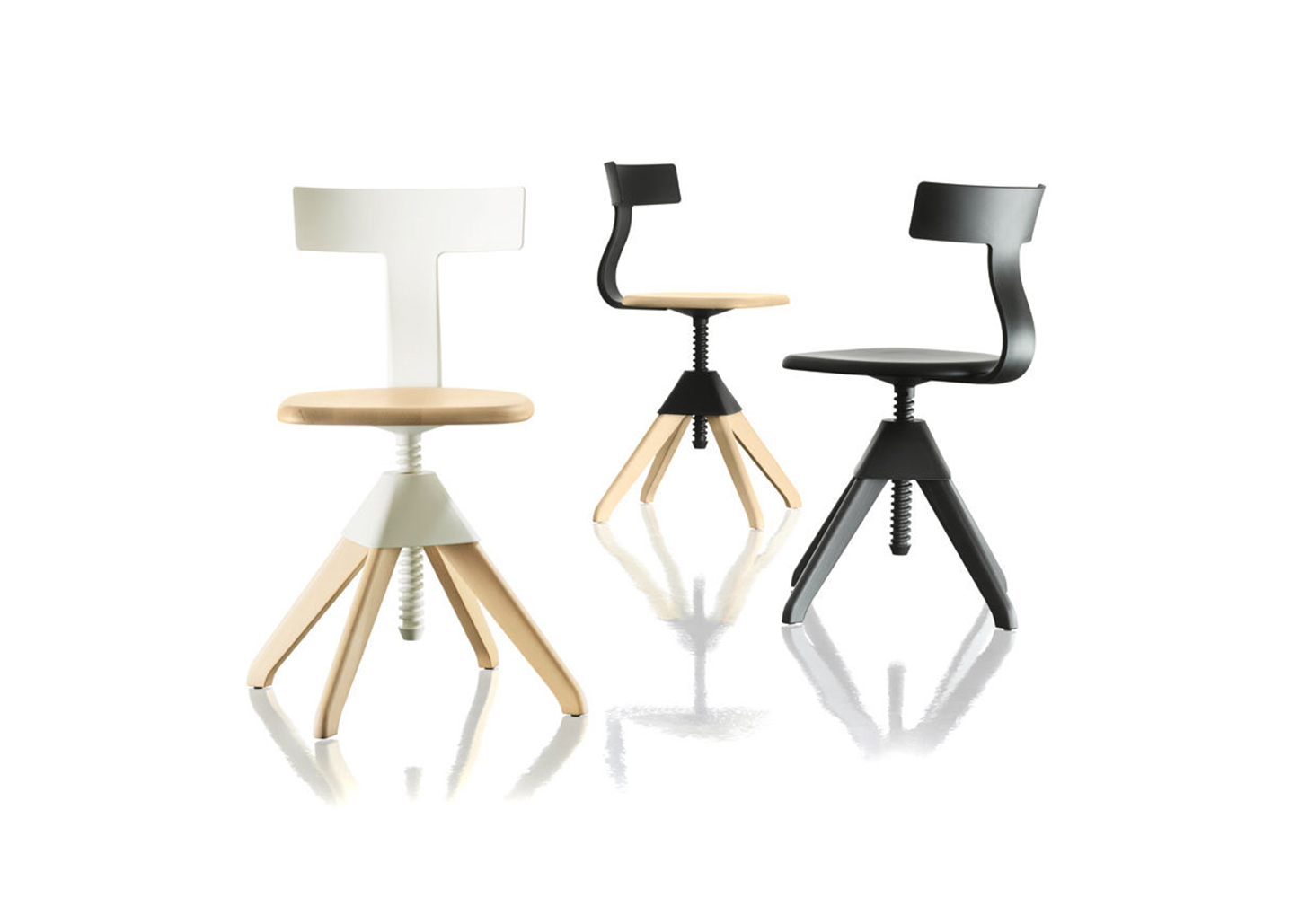Tuffy是一张旋转椅,高度可调。座椅和框架是天然或油漆的实心山毛榉木材。在聚丙烯中加入玻璃纤维后,连接和螺钉。伴随着毛毡垫。凳子或桌子的版本也可以。