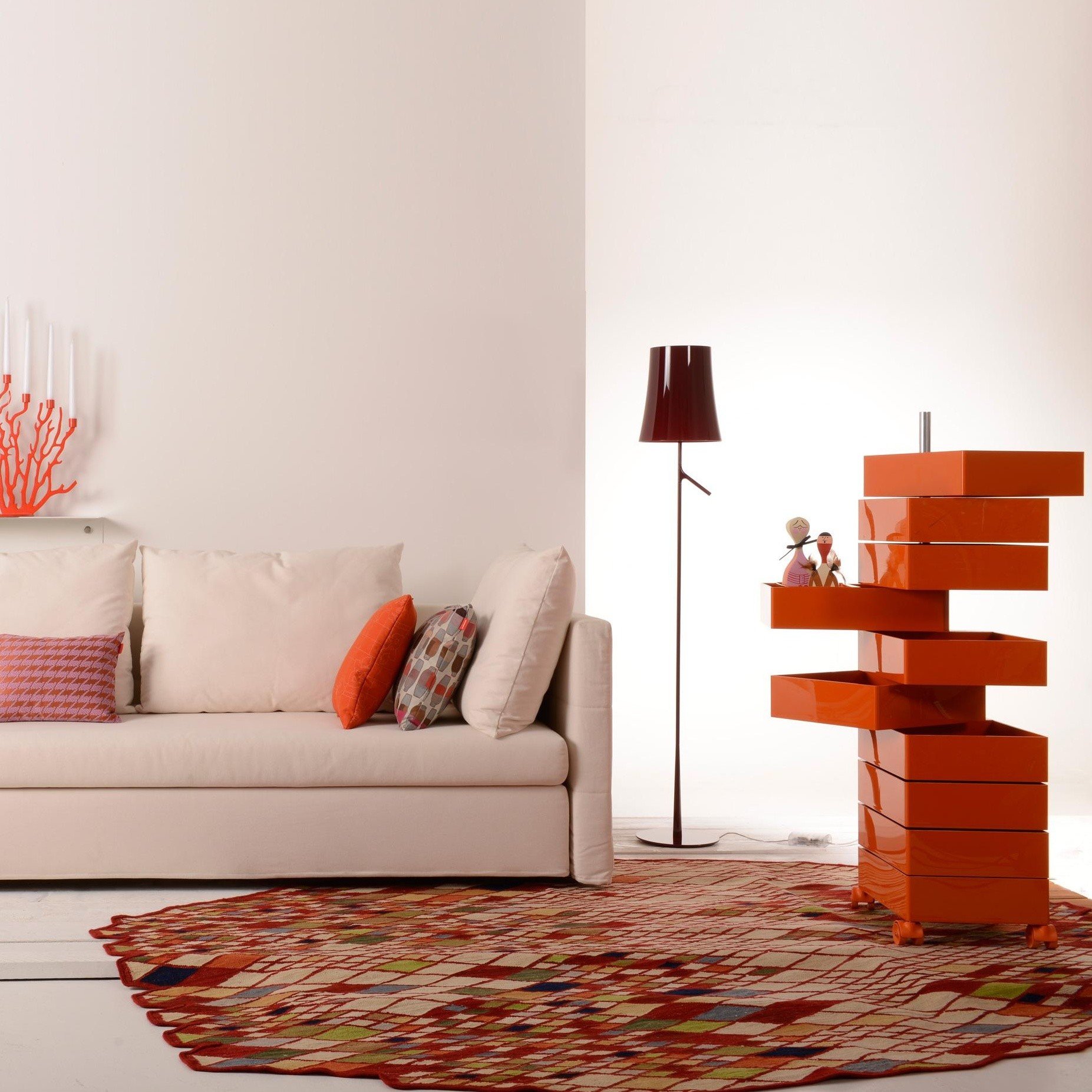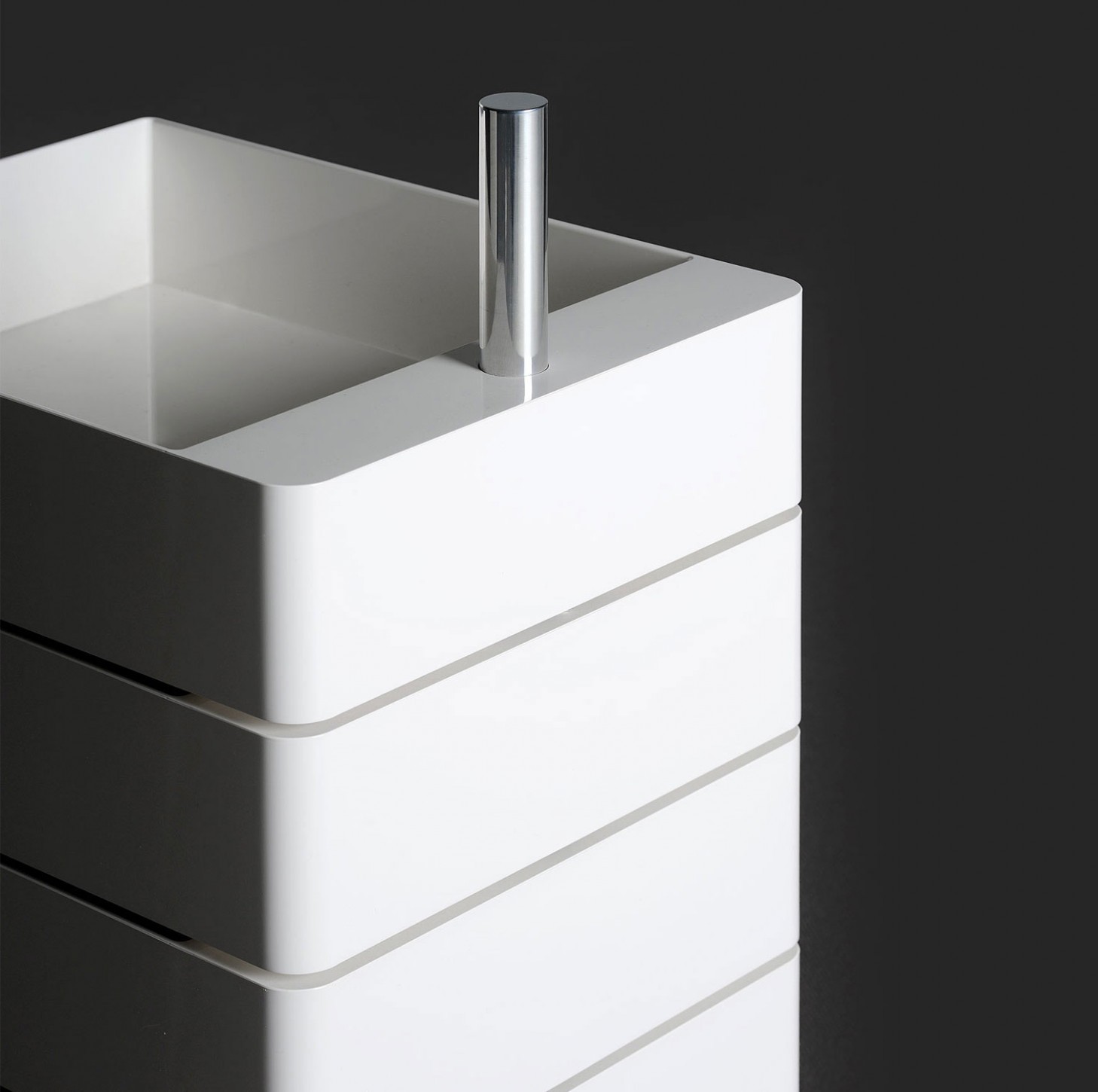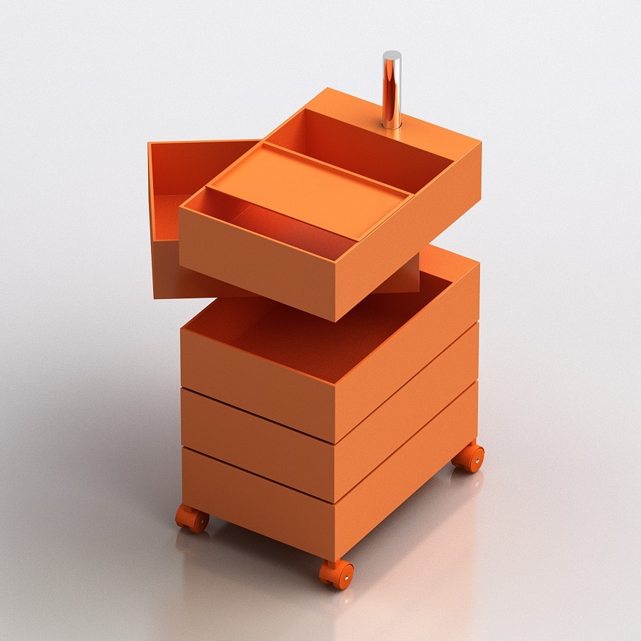 设计师康士坦丁.葛切奇以逻辑设计著称。他的360°集装箱设计是一个完美的例子,它解决了如何保持抽屉的所有内容可访问的问题。它的铝杆作为一个枢轴点,允许每个抽屉独立旋转,以便您可以访问其全部内容或隐藏起来轻松。由光滑的ABS塑料制成,可用橙色、白色和黑色。