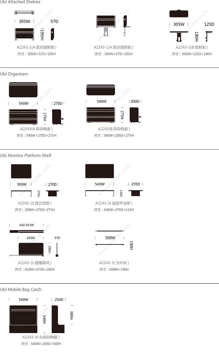 Ubi Attached Shelves 系列尺寸/示意图