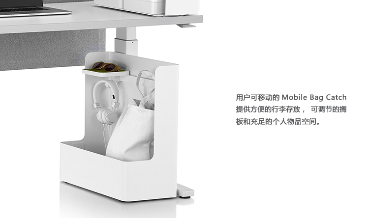 用户可移动的Mobile Bag Catch提供方便的行李存放,可调节的搁板和充足的个人物品空间。