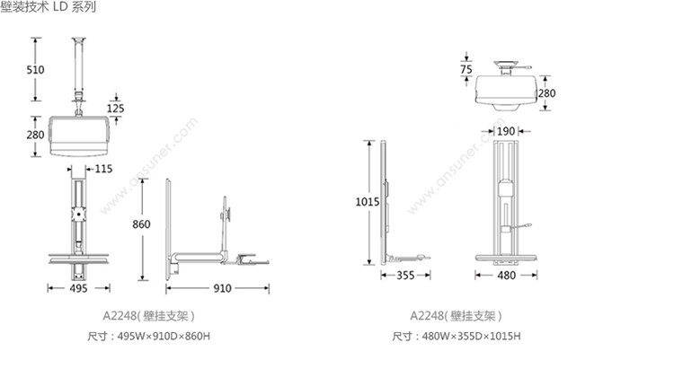 LD 系列壁挂显示器支架 系列尺寸/示意图