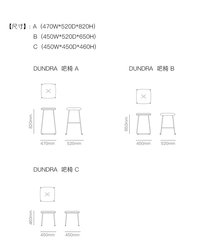 DUNDRA 吧椅 系列尺寸/示意图