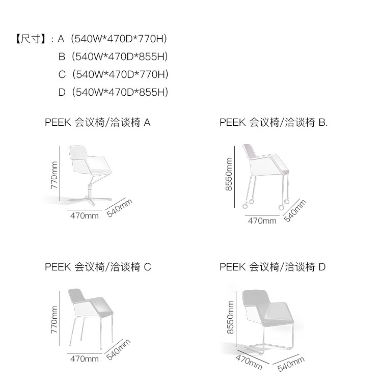 PEEK 会议椅/洽谈椅 系列尺寸/示意图