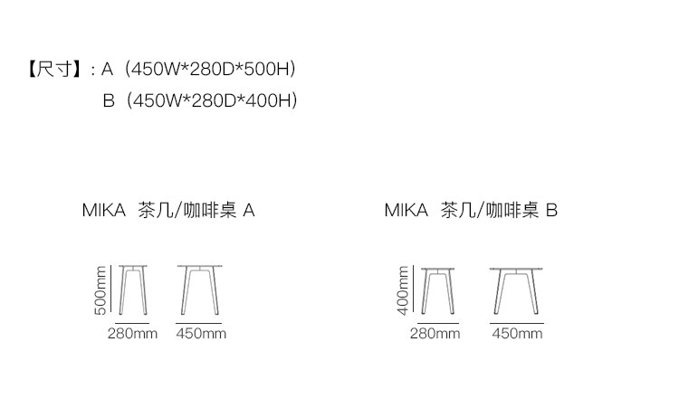 MIKA 茶几/咖啡桌 系列尺寸/示意图