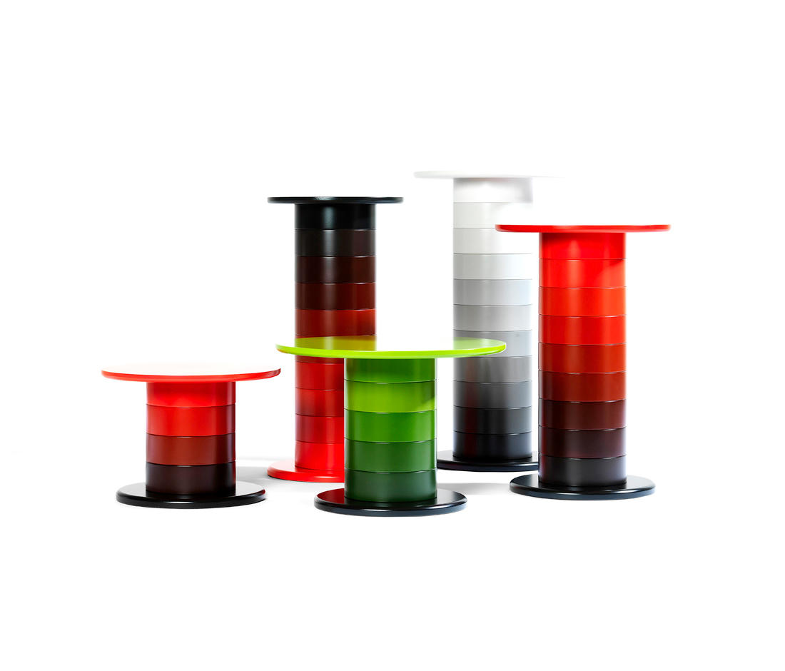 Babel -Babel是带有压模桦木环的柱形桌,漆成不同的NCS颜色。每个环增加95毫米。Babel可用于各种应用,例如小型茶几或高矮的茶几。吧台桌。模压桦木帘布层的环。用黑漆或镀铬钢覆盖的MDF踏板。用UV漆MDF制成的桌面。标准色标从黑底到白底或黑底到红顶。底脚板覆盖在黑色粉末漆或铬钢。