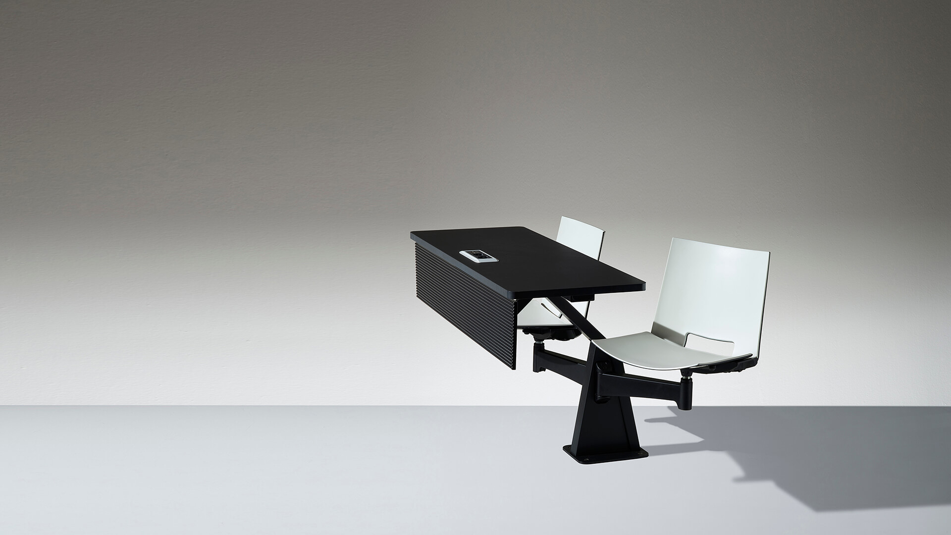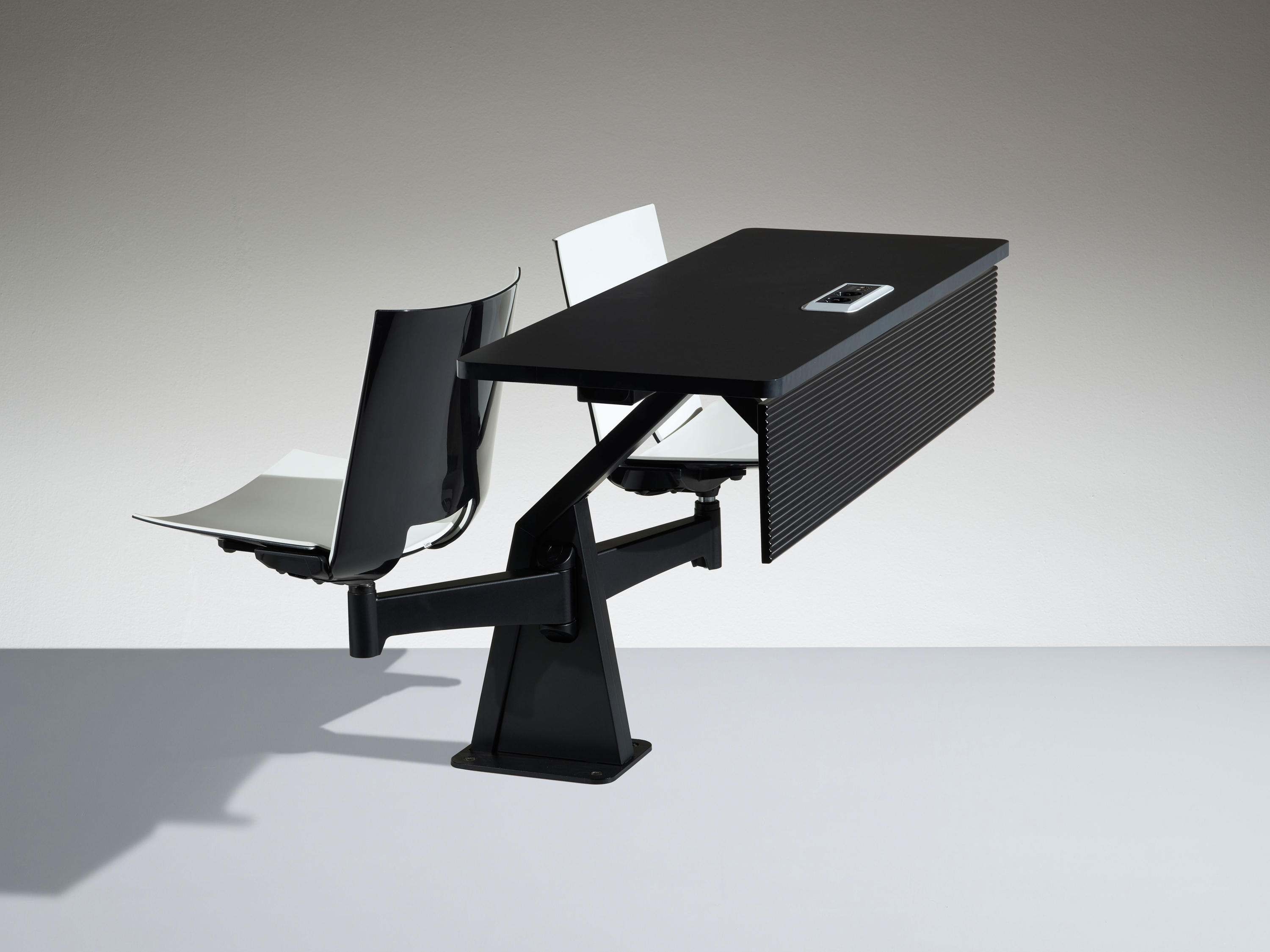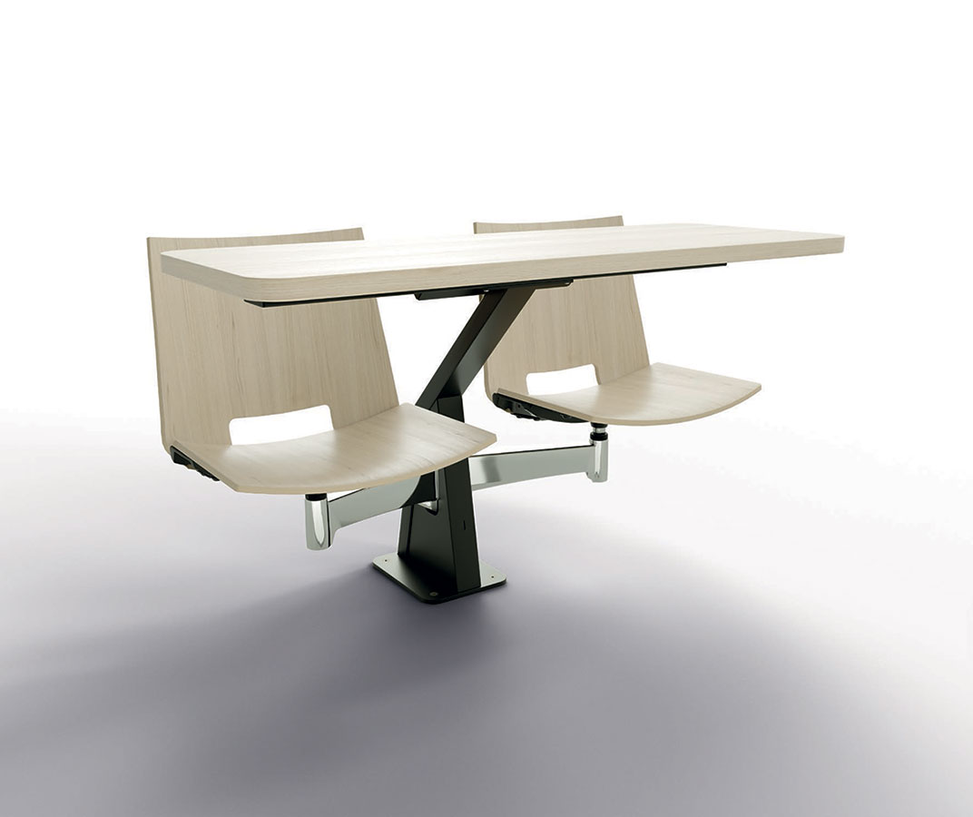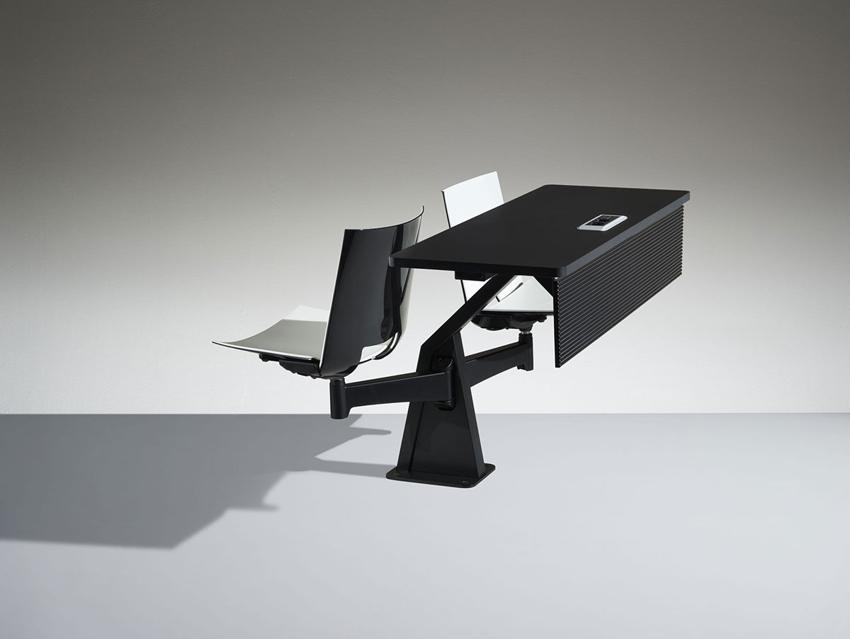 ST12-13家具是一件式系统,由两个可移动座椅和带压铸铝且喷漆的枢转臂组成。有2的倍数可用,可以定位在半圆或直行中。ST12-13家具系统可轻松放置在平坦的地板或架子上。 座椅支撑臂可提供64度的运动以及360度的旋转式座椅,并提供极大的运动自由度。通过在不同的行上,这提供了在同一个表上工作的可能性。 带ABS边缘的双层压板工作台面经过协调或电镀,深度为40cm。我们可以将电气化系统与在工作台或支撑结构上可触及的插头集成在一起。