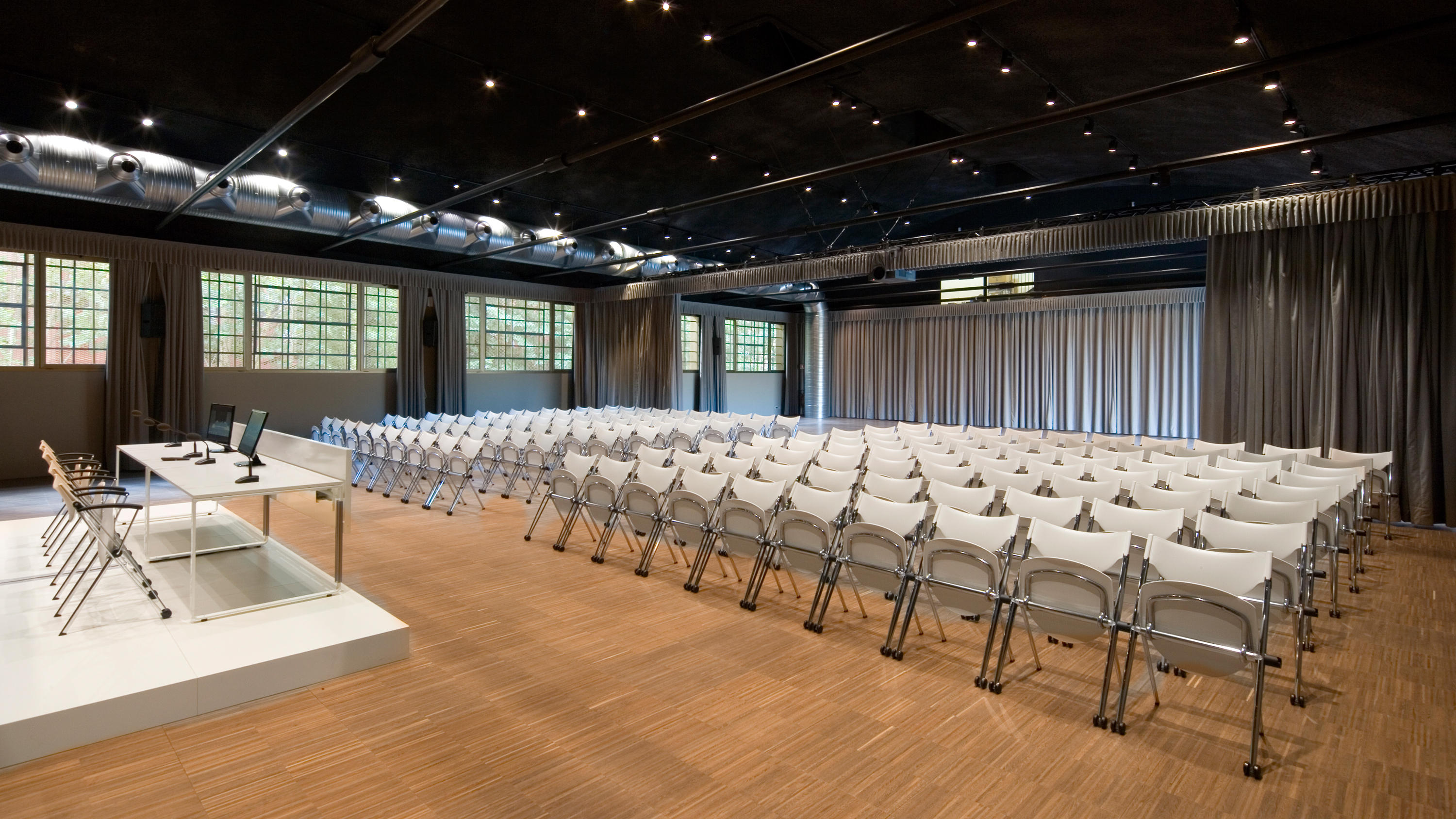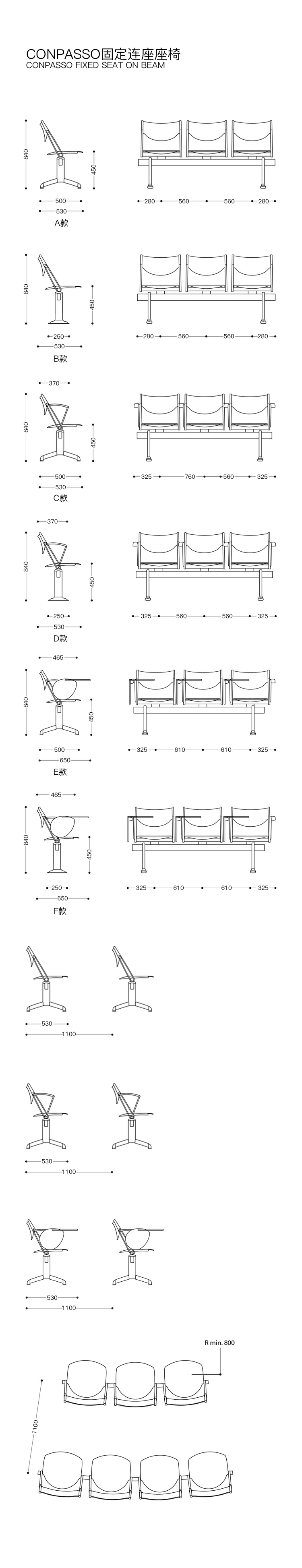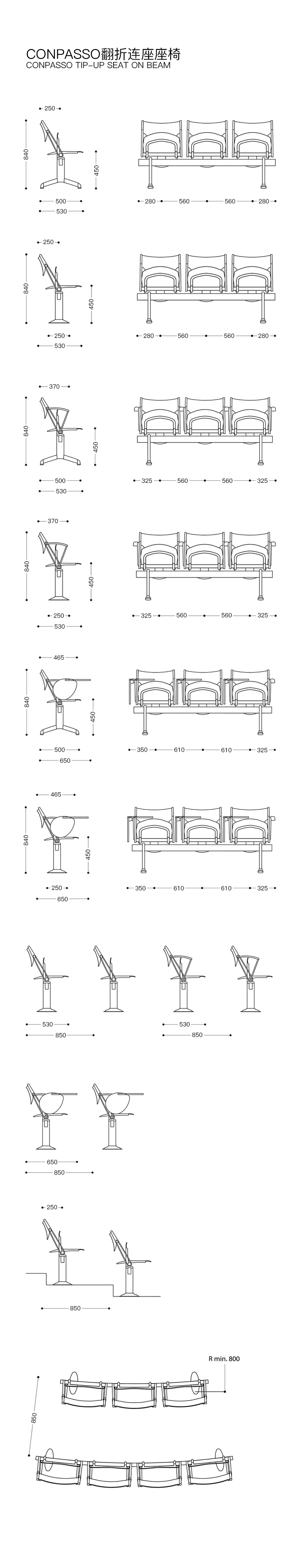 座椅系统提供固定或折叠式版本,带有手动或自动弹簧结构。座椅和靠背采用聚丙烯,榉木胶合板或聚氨酯泡沫衬垫和织物覆盖物,具有多种颜色。它也具有与特强钢梁相同的特性,配备固定的或倾斜的2、3或4个座位。