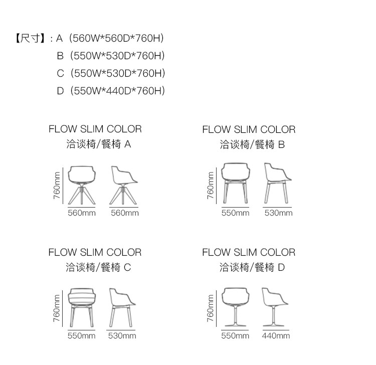 FLOW SLIM COLOR 洽谈椅/餐椅 系列尺寸/示意图