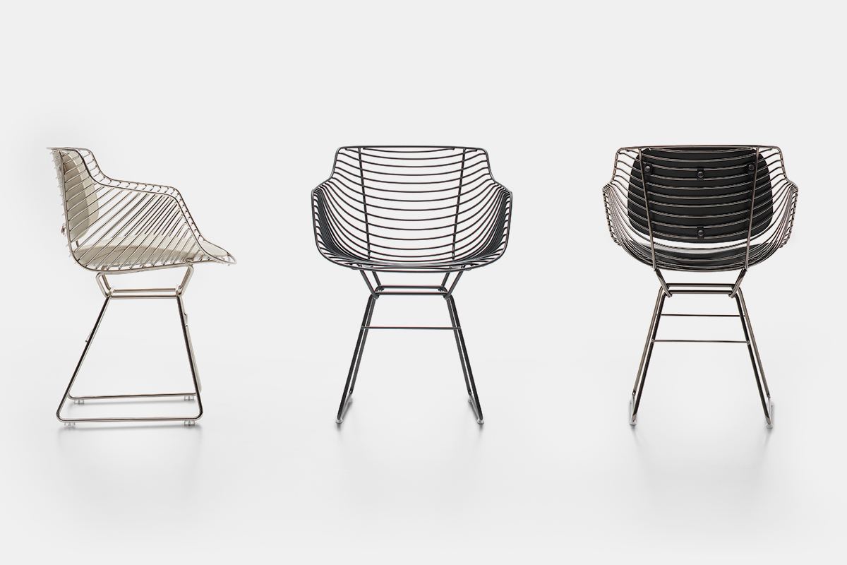 Flow Filo -Flow系列以其具有强烈视觉冲击力的产品庆祝其成立十周年。用钢棒制成并具有特殊的表面处理,轮廓轮廓突出了体积,彰显了永恒的形状,成为了产品的标志。国际现代设计, 完全在意大利制造,并通过创新和高品质的材料和生产工艺。 类型和版本: •流量费罗,室内版本:在钢筋承重架不同直径的,与原来的橇状底座设计,有光泽的黑色铬或镍铬涂层。 •流量费罗和外出版本:在钢杆承重框架,不同直径的,与原始雪橇底座设计,环氧粉末涂层青铜无光泽和黑镍饰面,与特定的治疗户外使用。 配件 特别垫,只能在室内使用,由皮革制成聚氨酯填充,象牙和黑色哑光色。 可在座位或座位和靠背的版本。盖不可拆卸的。使用在背部特殊扣紧固到结构。 通用尺寸:可在椅子和扶手椅上使用