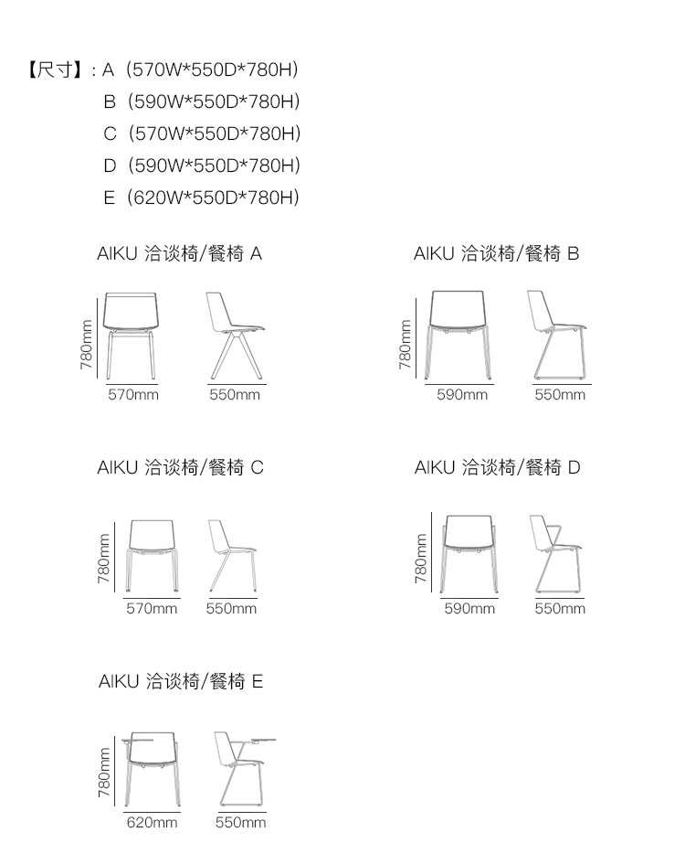 AIKU 洽谈椅/餐椅 系列尺寸/示意图