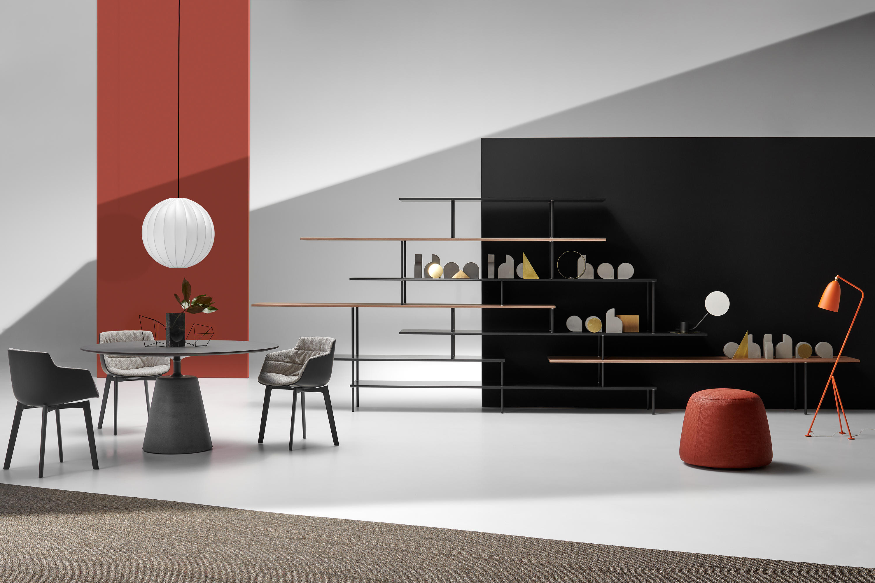 新成分:F,G,H,I,J 新饰面:哑光古铜色,哑光黑尼科尔漆,Canaletto胡桃木和漂白橡木。 正式的轻巧,图形标志,简单的设计,和谐的美学,必要性是让·努维尔设计(Jean Nouvel Design)设计的Super_Position书柜系列的标志。 重叠的线表示对水平度的重视。不间断的垂直线穿过架子,就像小跳水板一样延伸到空隙中。 物件,花瓶和雕塑可以在空的空间,重叠线的中间或末端的壁express中表达其比例差异。” Jean Nouvel