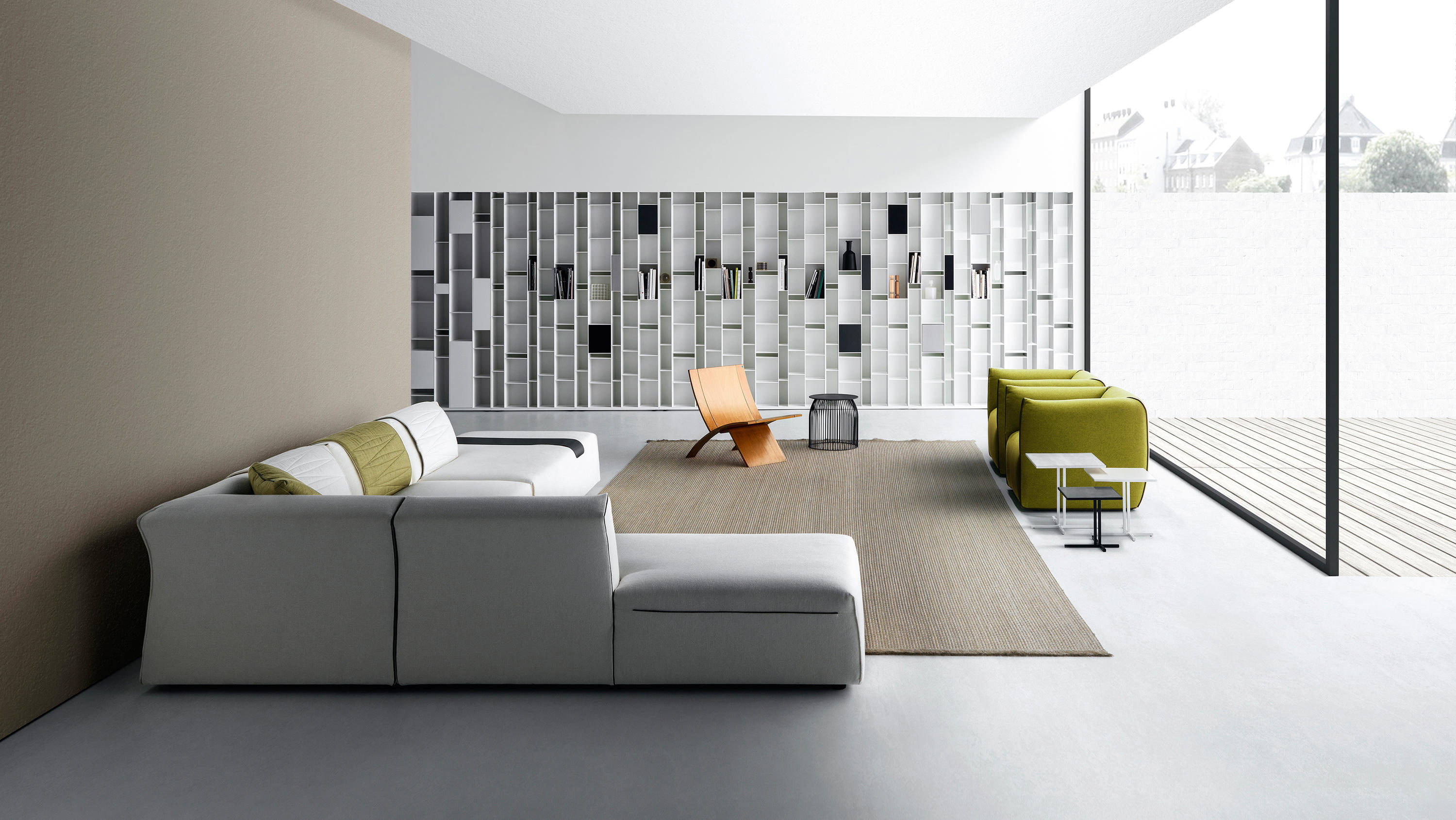 Thea是新的软垫系统,源自女性对形状的解释以及明显对立的指导原则之间的平衡:舒适,舒适-整洁,动态-严格,轻巧-高度紧凑。Thea的折衷主义在于对不同观点的和谐研究:正面正交,侧面倾斜和背面凹入。沙发具有高度的原创性和动感,只是因为它融合了所有这些语言:它是一种投射和形状的游戏,赋予其设计独特且可识别的标志。涂层增强了女人味:就像包裹包裹和垂褶的连衣裙一样,褶皱完美地粘在模块的形状上。通过使用不同的接缝,对剪裁细节以及意大利剪裁的要求给予特别关注。在三种不同的颜色(白色,鸽子灰色和无烟煤灰色)中应用偏斜接缝和对比度磨边,以定义角度,曲线和形状。五个功能性配件完善了产品系列:头枕,靠垫,方形垫子,被子和铝制托盘。