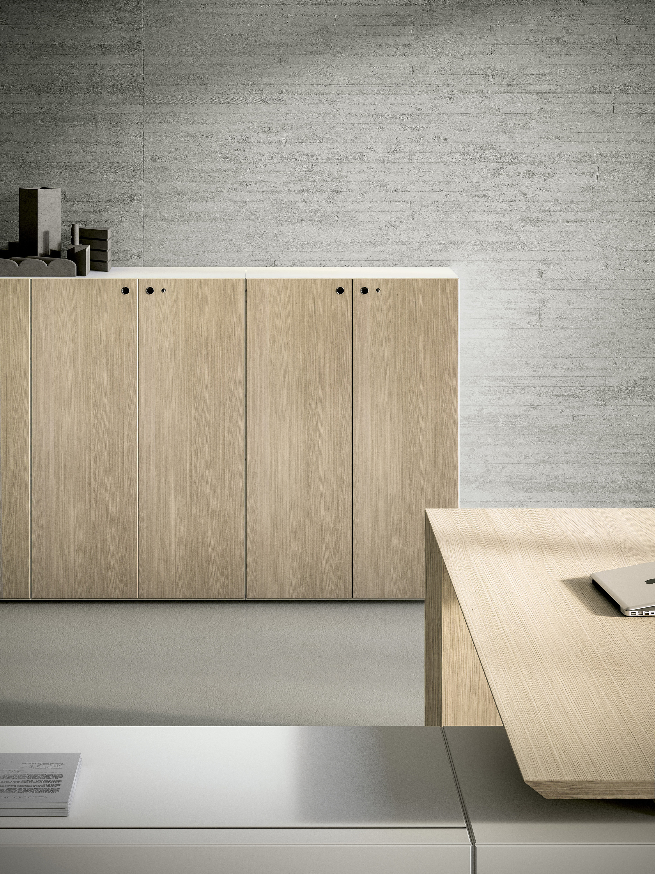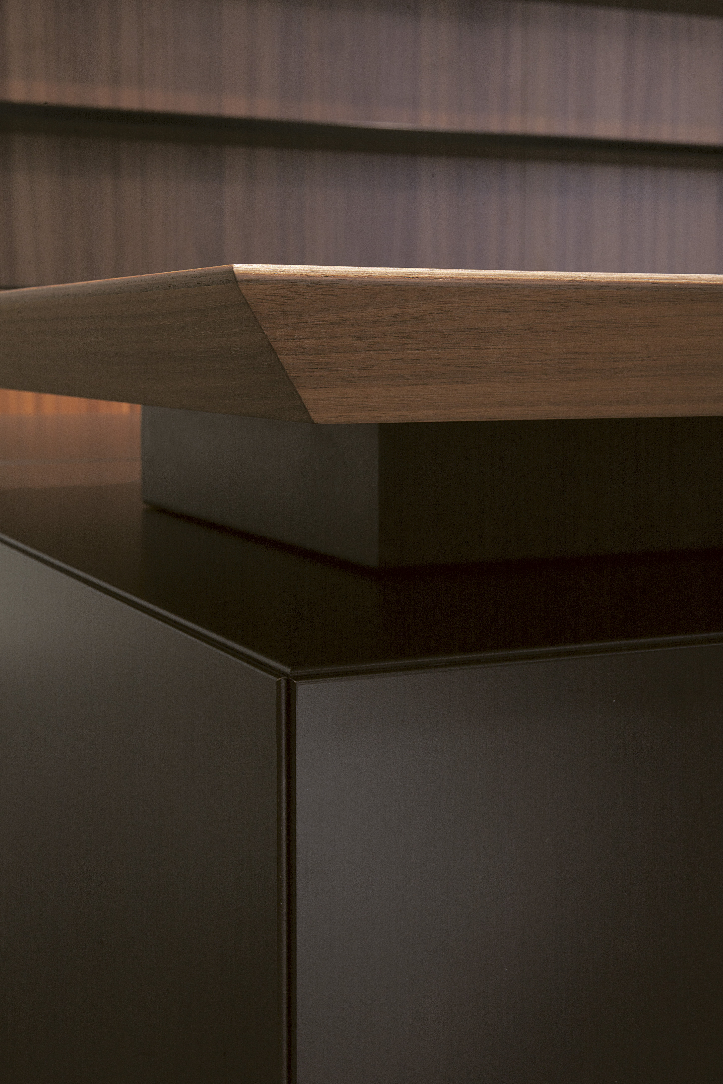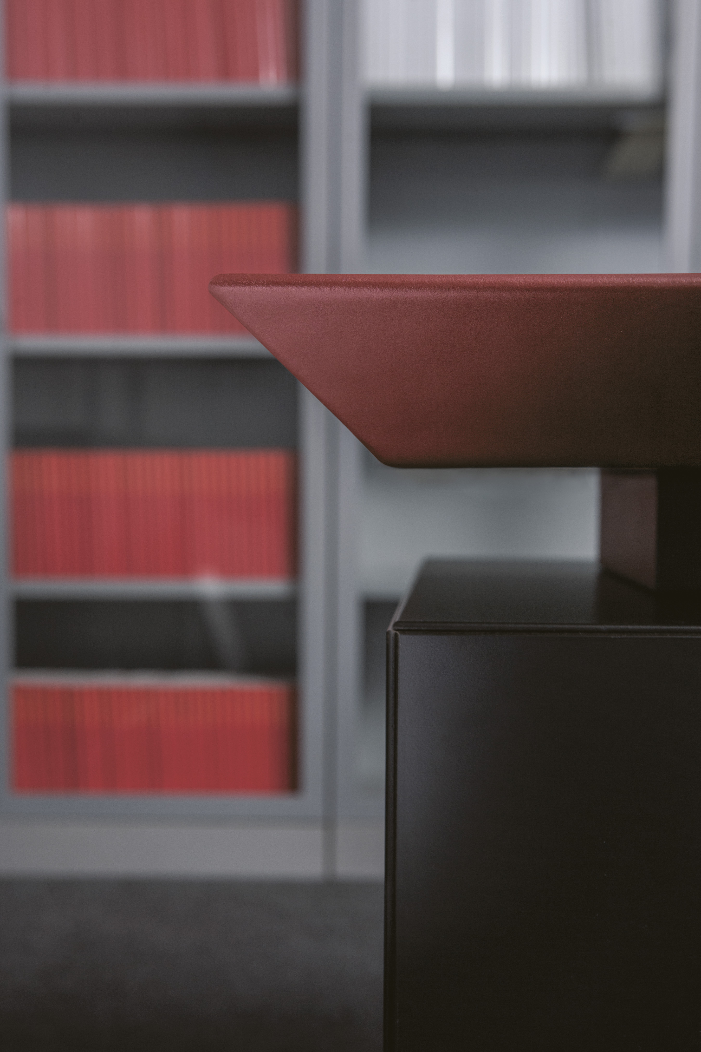 Multipli系列的又一个享有声望的发展:设计概念树立了持久的榜样。45°边缘的鞋面完全用皮革覆盖,是Gino Valle不寻常的设计特色。一种充满温暖和个性的材料,提供各种颜色以创造独特的环境。 独特的45°边缘营造出非凡的视觉效果,使顶部看起来超薄,并为各种配置赋予动态外观。服务单元的优雅黑色饰面启发了皮革覆盖物的多种颜色组合。 配合QUADRO使用的白面整理储物单元的范围也在不断扩大:QUADRO是一种多功能壁挂式元件,其把手集成在单元的主体中。可以将QUADRO的手柄安装在顶部或底部,并向左或向右开口,以满足所有要求。