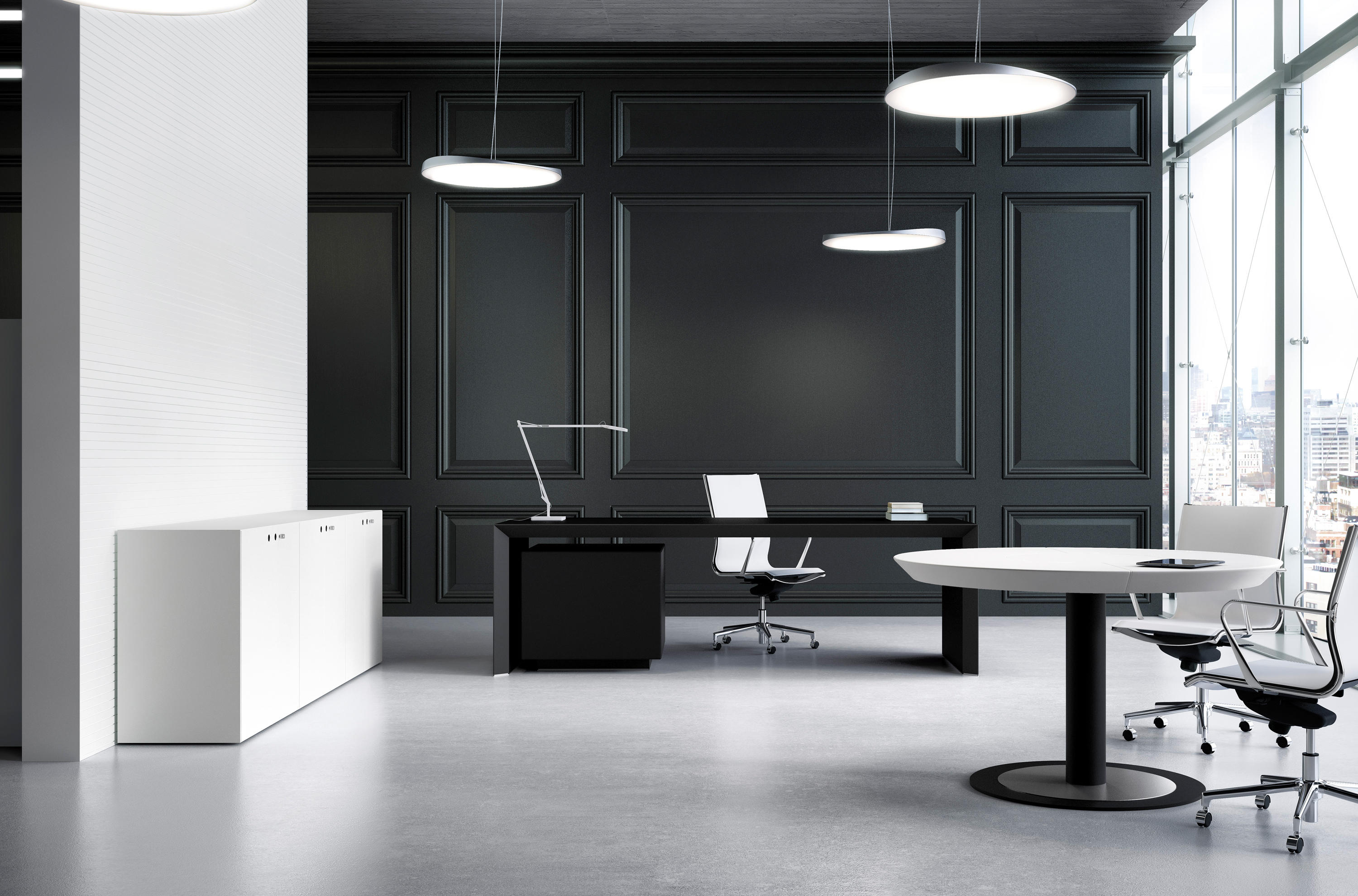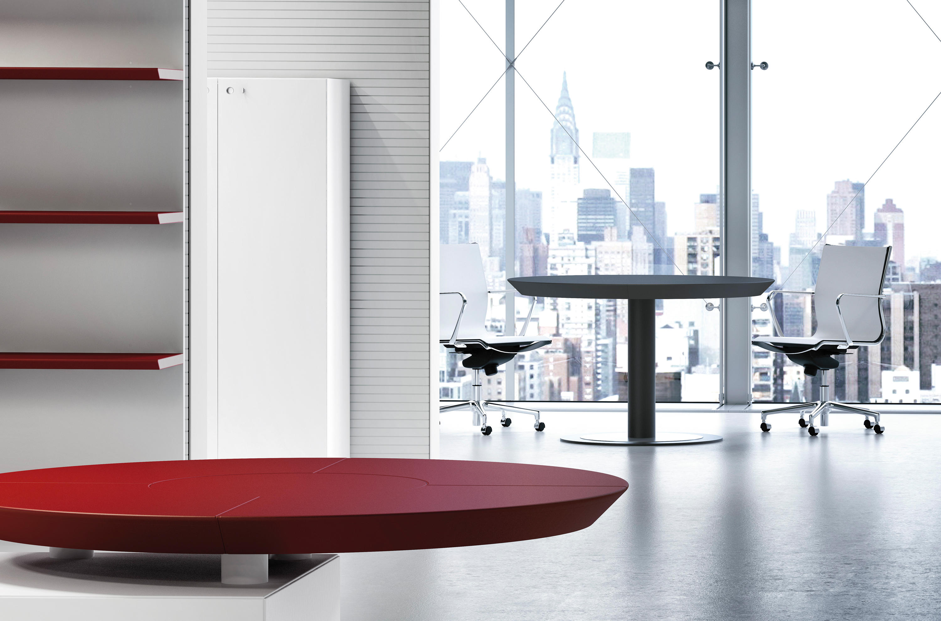 独特的45°边缘营造出非凡的视觉效果,使顶部看起来超薄,并为各种配置赋予动态外观。服务单元的优雅黑色饰面启发了皮革覆盖物的多种颜色组合。