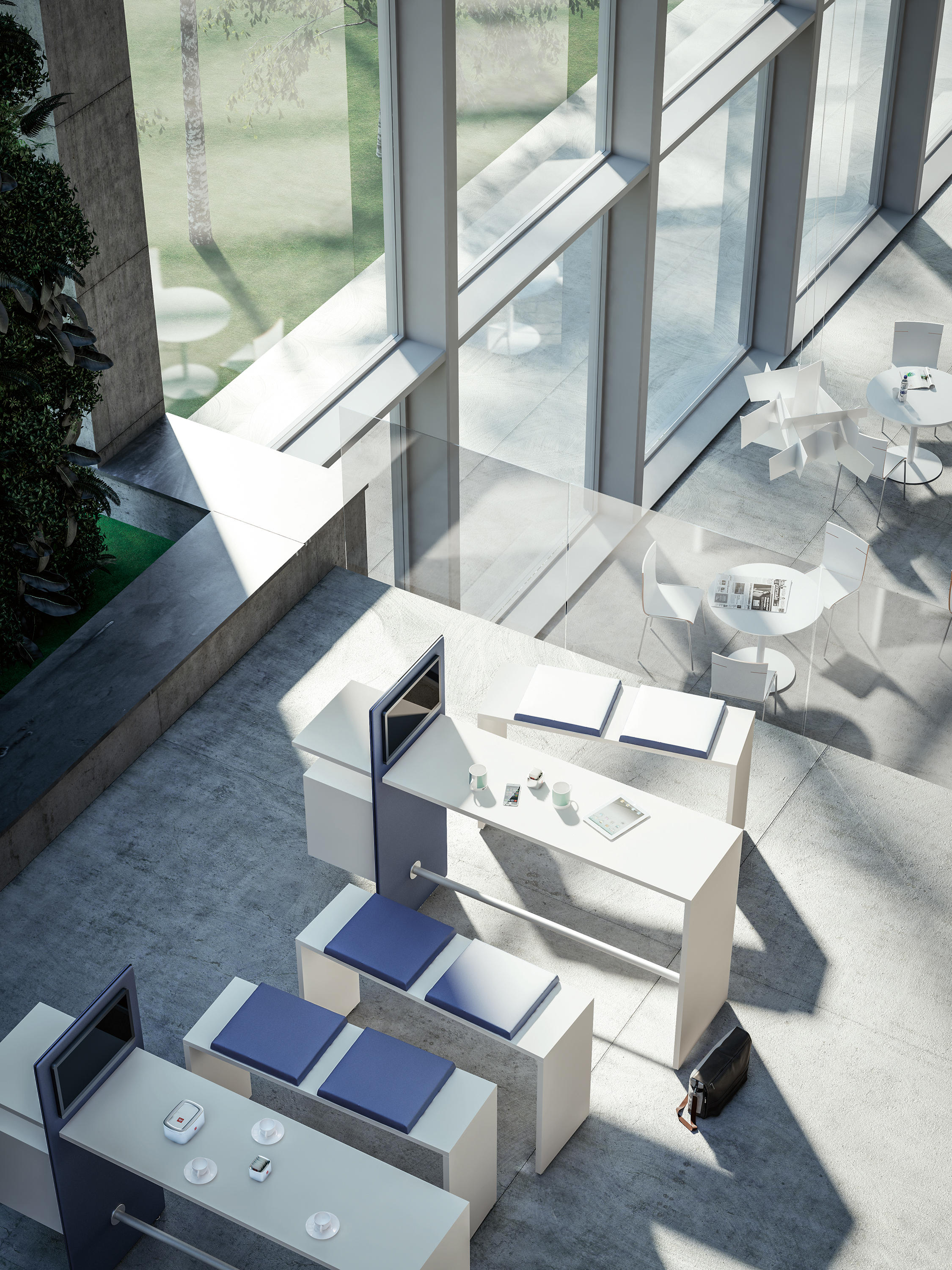 多功能和智能。Sistema28将技术,人体工程学和美学完美融合。电源和数据电缆易于访问和管理,这要归功于宽敞的电缆走线,带有双侧盖和推拉打开系统。 隔音效果。办公桌可以配备织物,有机玻璃或吸音Nanofor制成的屏风。最后一种选择包括将MDF面板粘合到层压板上。MDF支架上打有8毫米的孔,每平方米可形成约8000个回音室,以确保出色的吸声效果。前孔的直径为0.5毫米,每2毫米分布。 透明度满足隐私。办公桌可以配备前面板和透明或不透明的屏幕。前面板还具有120厘米高的版本,并带有铝制导轨,该导轨可以配备一系列配件,例如额外的屏幕或储物托盘。 灵活的系统。Extralong桌子适用于办公室和行政办公空间,可以与较低的服务模块结合使用,为组合增加了额外的空间。 温馨的空间。Sistema28专为工作场所的社交生活新概念而设计,可以共享从非正式会议到激动人心的休息等各个时刻。