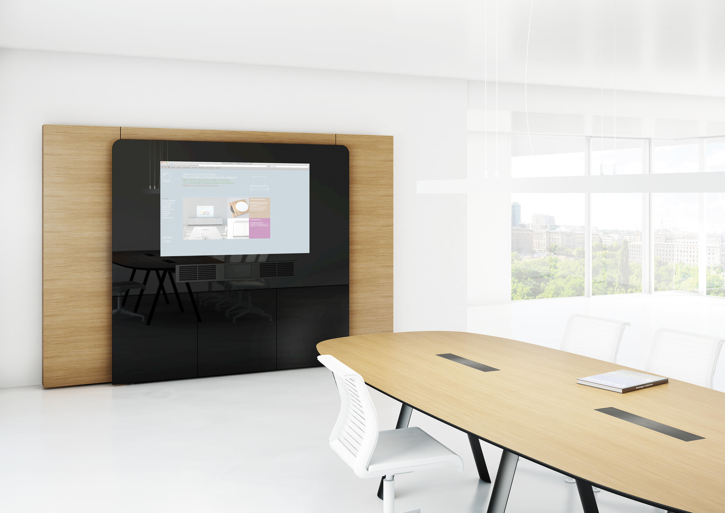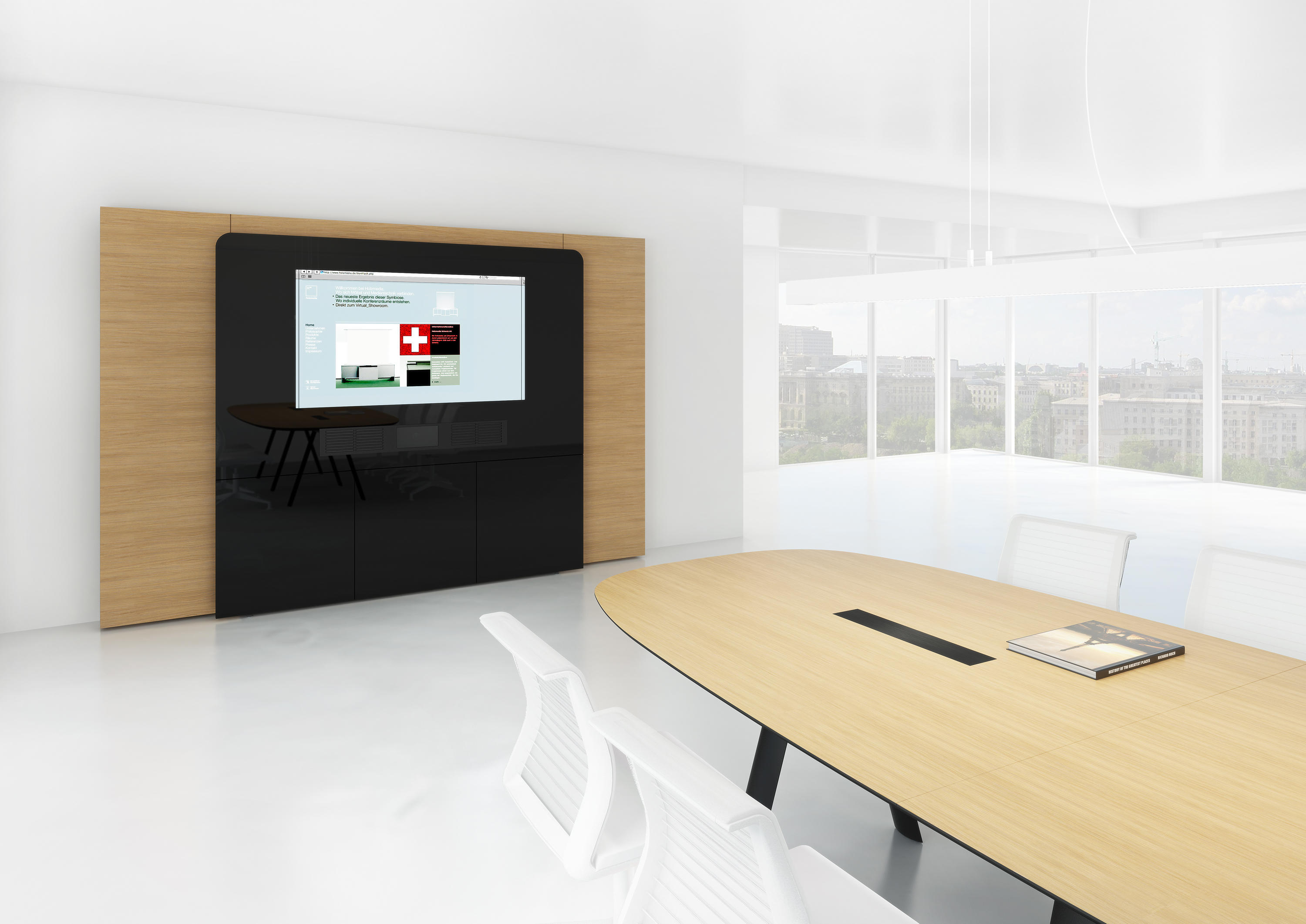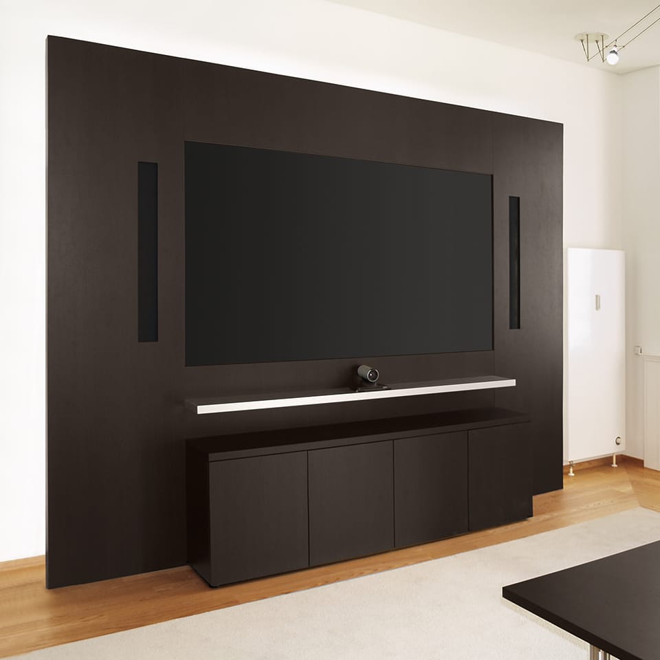 专门为视频会议所设计研发的多媒体墙,无论屏幕大小又或媒体墙整体尺寸均可根据客户需要,灵活定制(屏幕订制尺寸从65寸起订),为各种形式的演讲、沟通、视频会议提供最高效的解决方案。W4采用Holzmedia高品质材质打造,有多种配置及附件可选。并可根据客户需要,在媒体墙自带的储物柜中隐藏所有技术组件,为产品的使用和维护提供最大程度的便利。