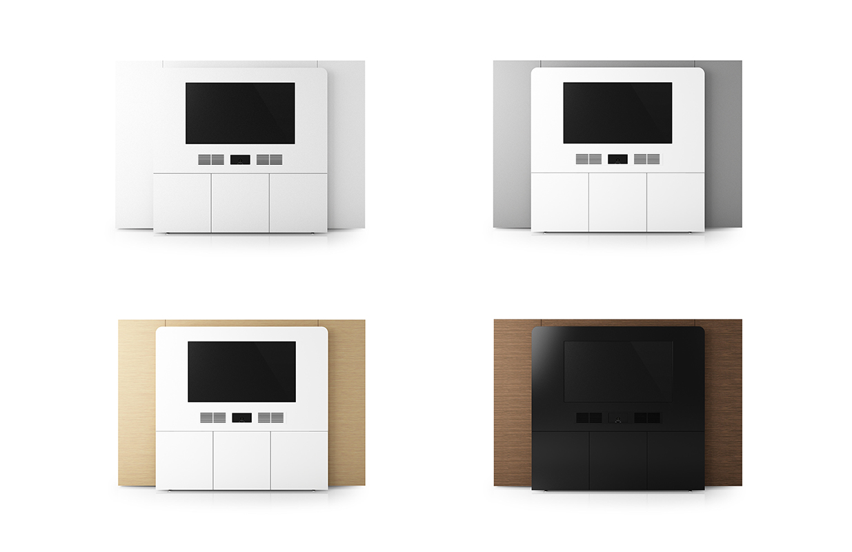 多媒体集成,背板有烤漆、实木贴皮,简约设计无限可能