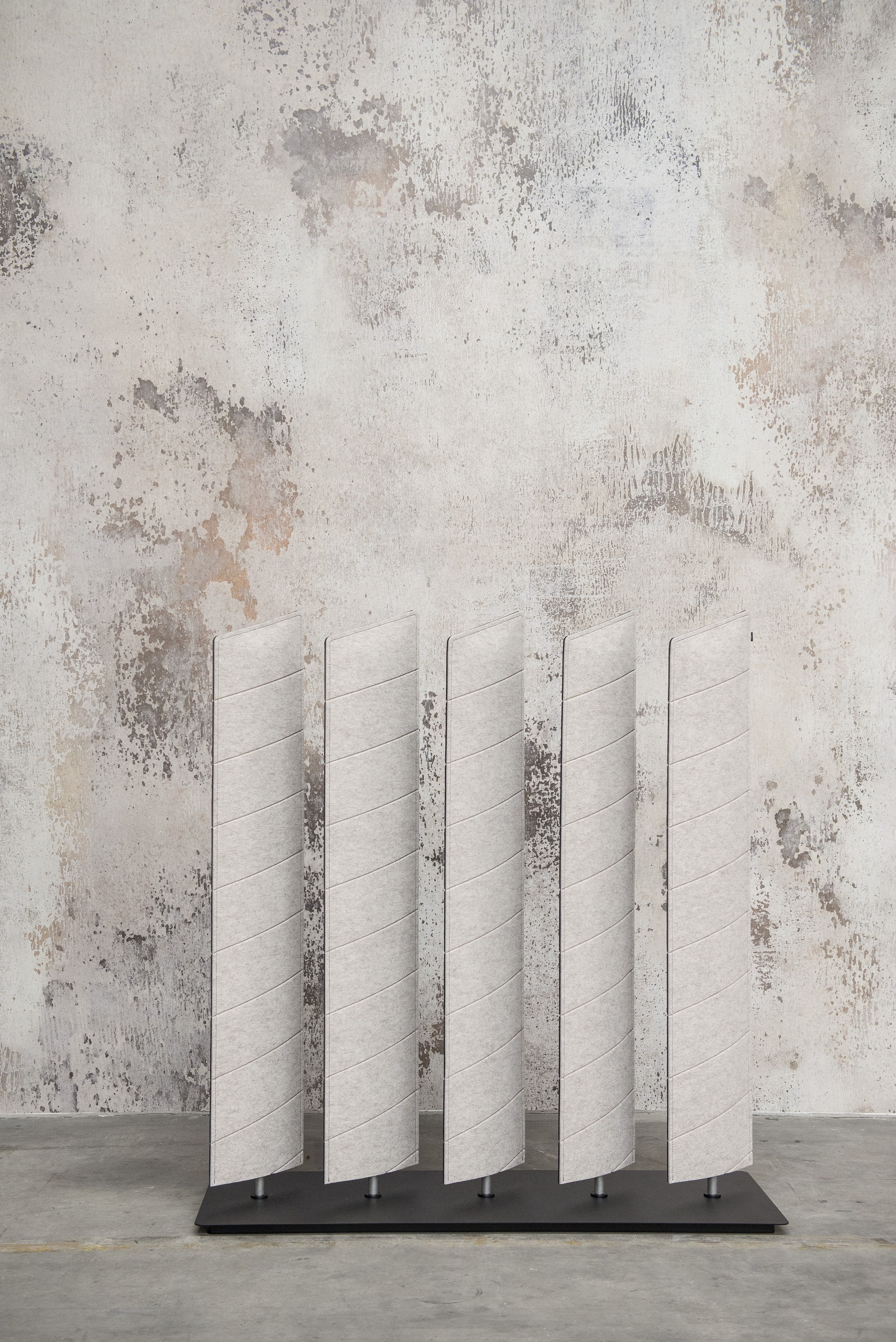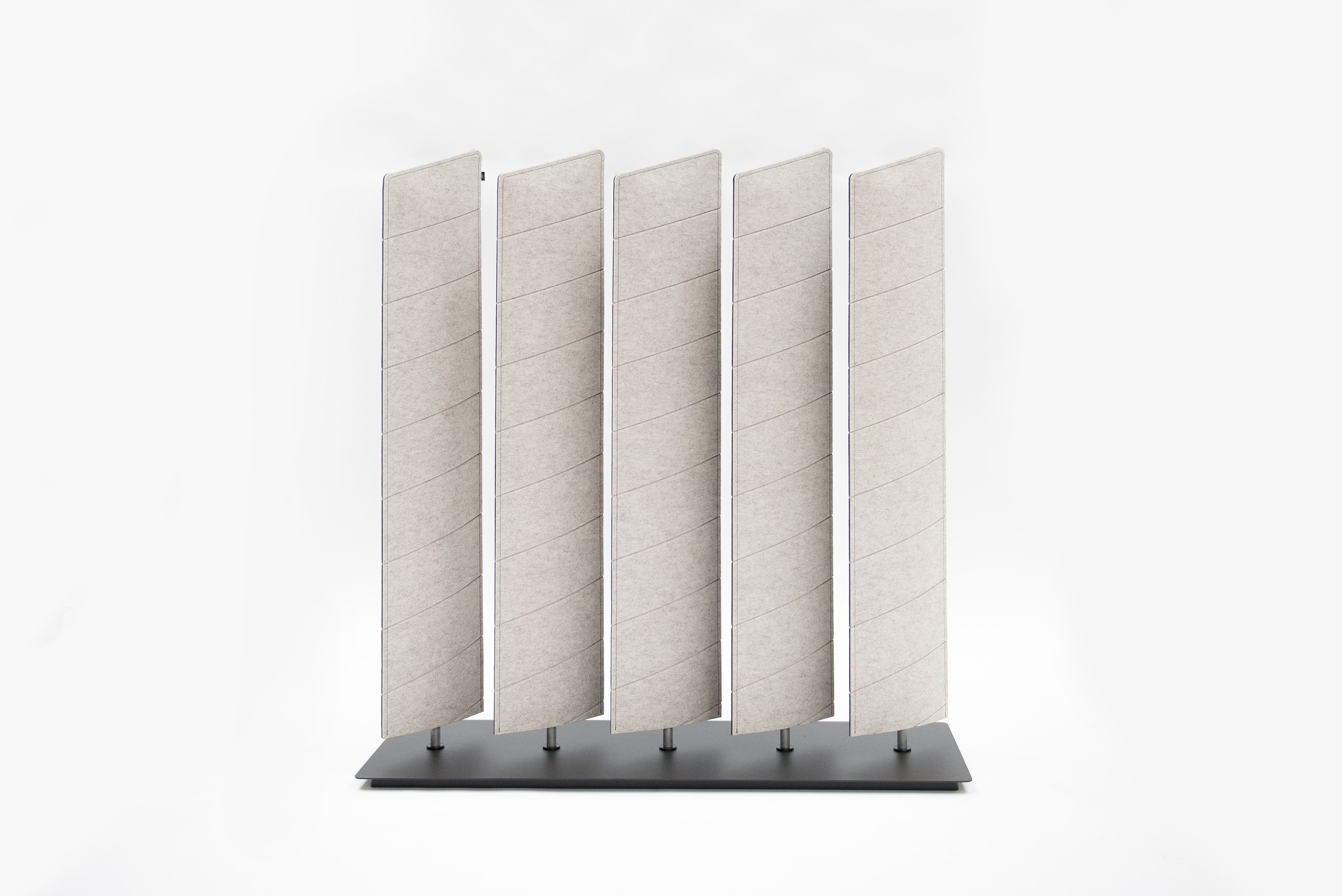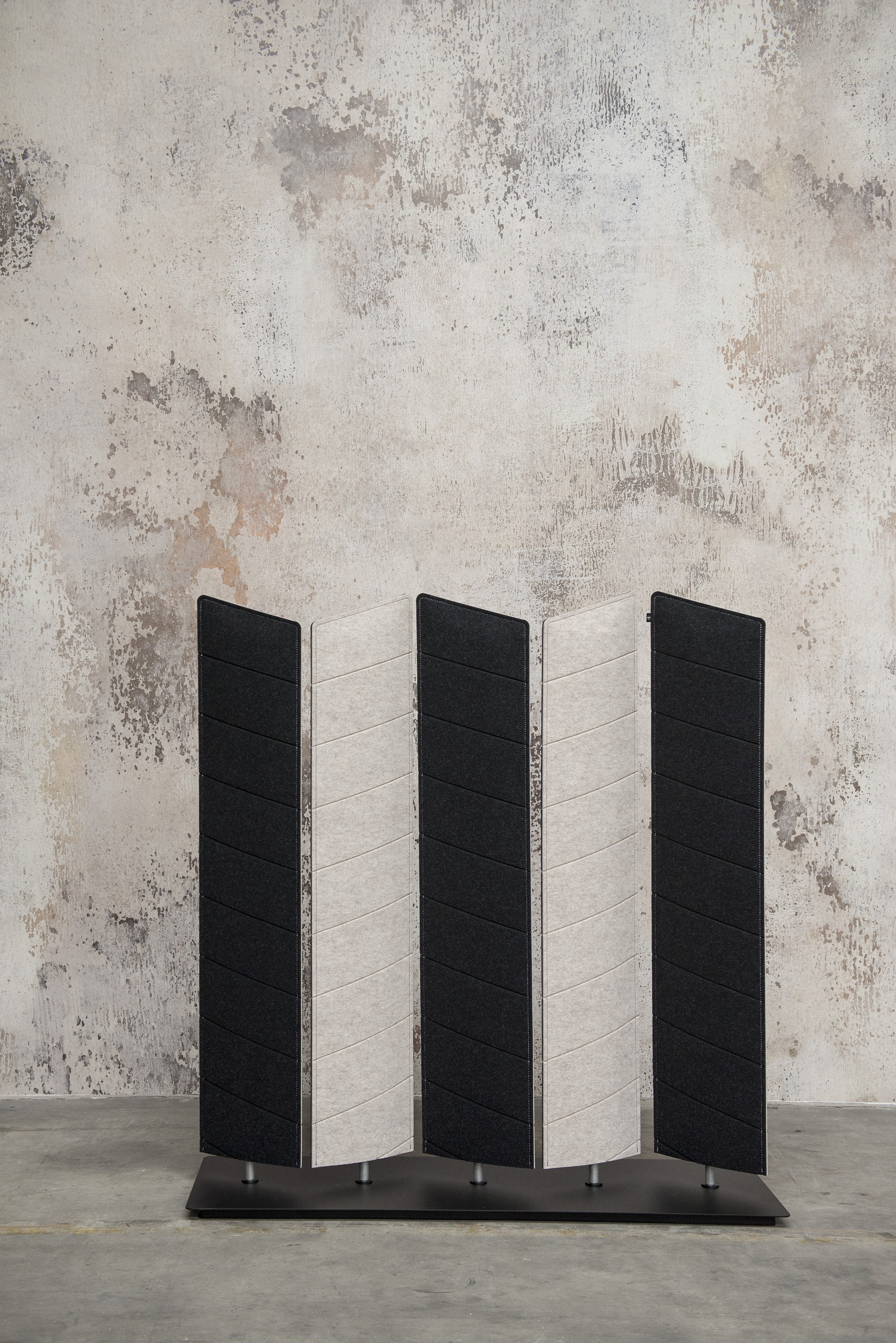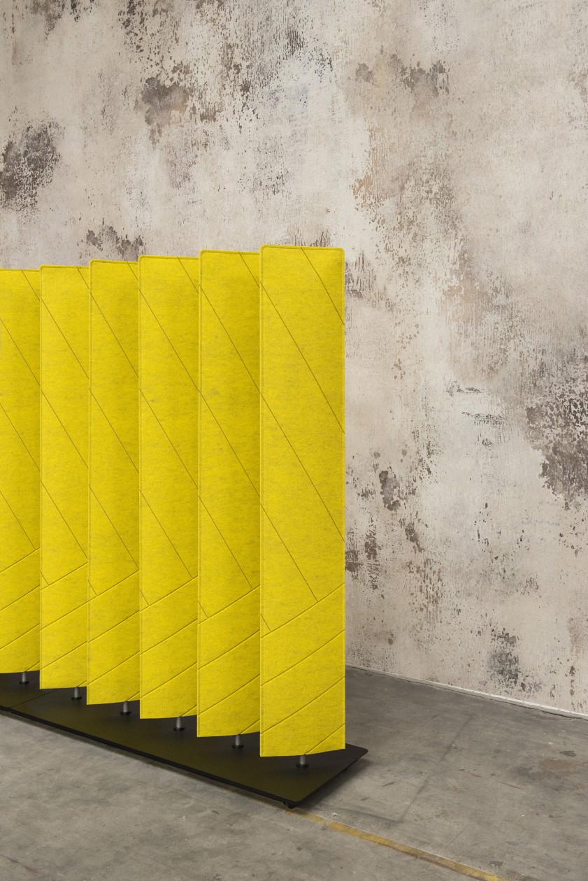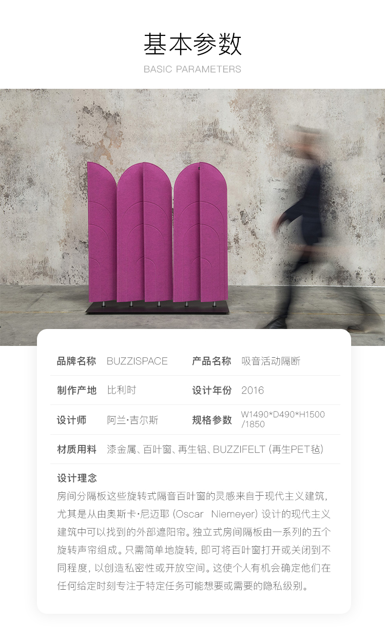 BuzziBlinds Classic于2011年推出,立即成为开放空间分隔面板的成功之选。五年后,是时候为该系列添加一些香料了。BuzziBlinds的灵感来自现代主义建筑。BuzziBlind的V形切口的定向所产生的节奏和音调为所有空间带来了动感和深度。 这个自支撑的分隔面板由一系列五个旋转的百叶窗组成。简单的旋转即可让您不同程度地打开或关闭百叶窗,以创建私人空间或开放空间。用户可以随时确定他们想要或需要专注于特定任务的隐私级别。 借助这些新的BuzziBlinds,我们希望提供创建更多个性化空间的可能性。 困难在于盲人逻辑特有的重复管理。我们的创作在视觉上不应太沉重。这就是为什么除了扩大它们之外,我们还对构成BuzziBlind的每个刀片顶部的形状进行了研究;我们还使用了Buzzispace开发的非常创新的V形切割技术,在百叶窗的外部材料上创建了图案。这些图案实际上仅通过光对隔音毡中“ V”形切口的影响以及它们的阴影才能显示出来。新的BuzziBlinds有4种不同的形状,可以直接在BuzziFelt中雕刻不同的V形图案。百叶窗可以具有不同的彩色表面,以便在百叶窗部分打开时产生有趣的视觉效果。在某些BuzziBlind上,还可以通过旋转两个刀片来创建不同的形状和新的图案。但是每个百叶窗也可以具有不同的颜色。它们也可以是直的或弯曲的... 所有这些为建筑师和最终用户提供了几乎无限的可能性,使新的BuzziBlinds成为表达自己的创造力的真正工具。