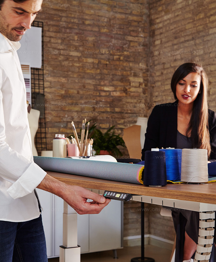 内置聚苯乙烯材质的可伸缩电缆,拥有升降功能的控制键盘,可根据工作需求调节桌面高度