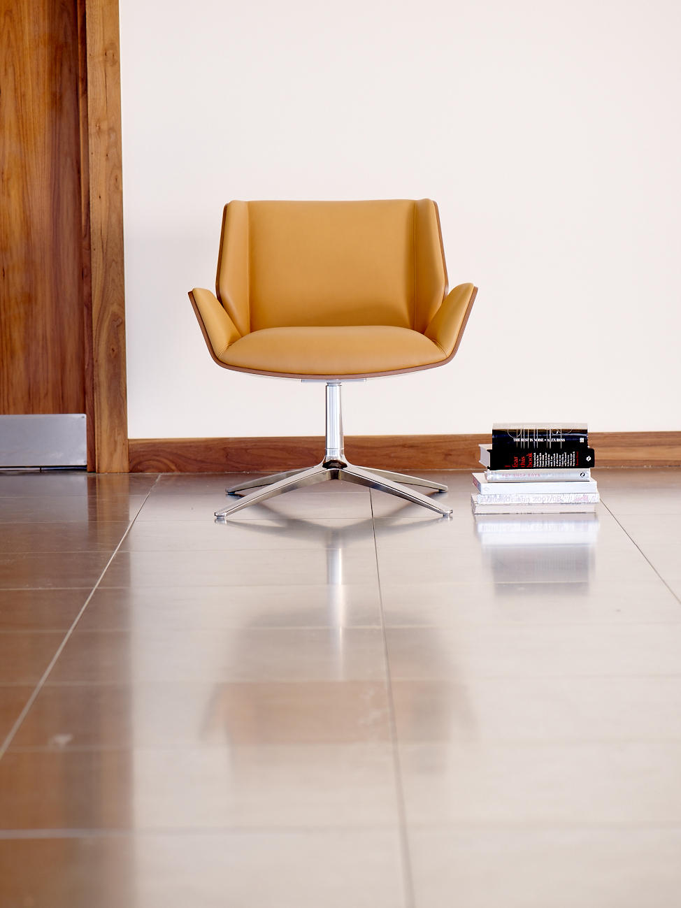 古典与现代的融合,诠释了Kruze(克鲁兹)躺椅背后的哲学。一种拥有醒目视觉效果和坐姿体验的智能设计结合了最精湛的工艺。高塑形的背部和轻柔弯曲的轮廓保证了坐姿的舒适性,而它别具一格的外形让它适应于任何行政大厅,接待室或会议区域。