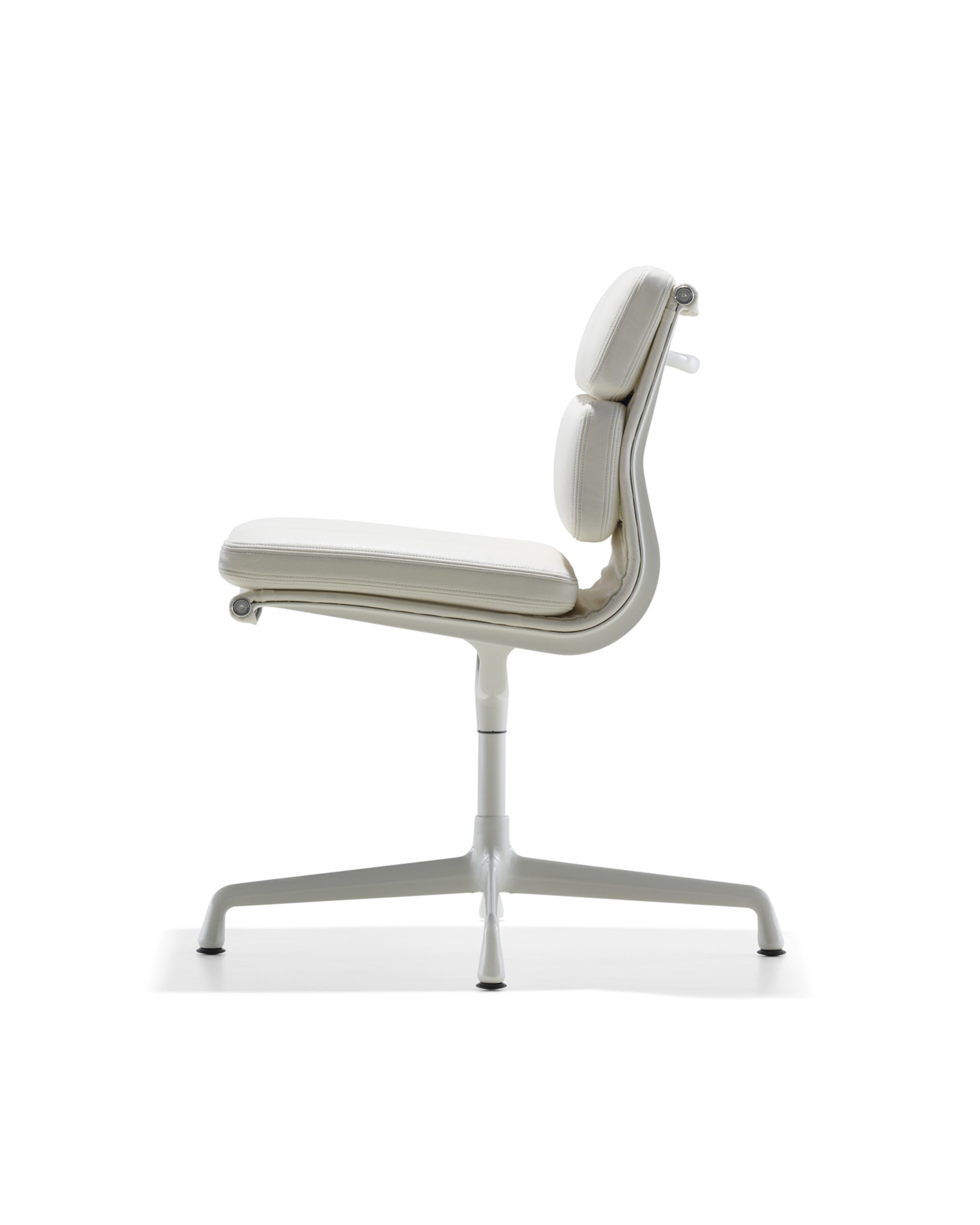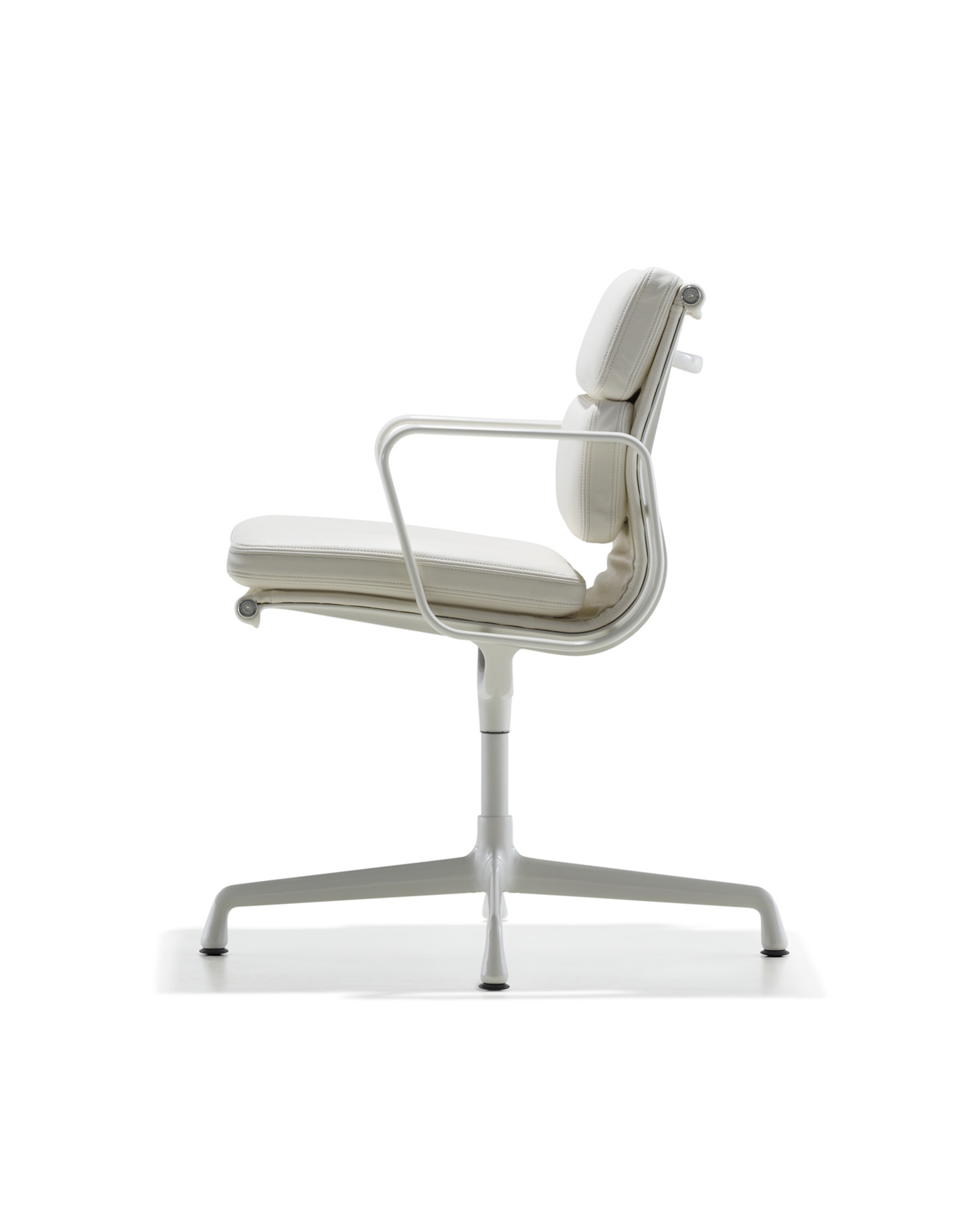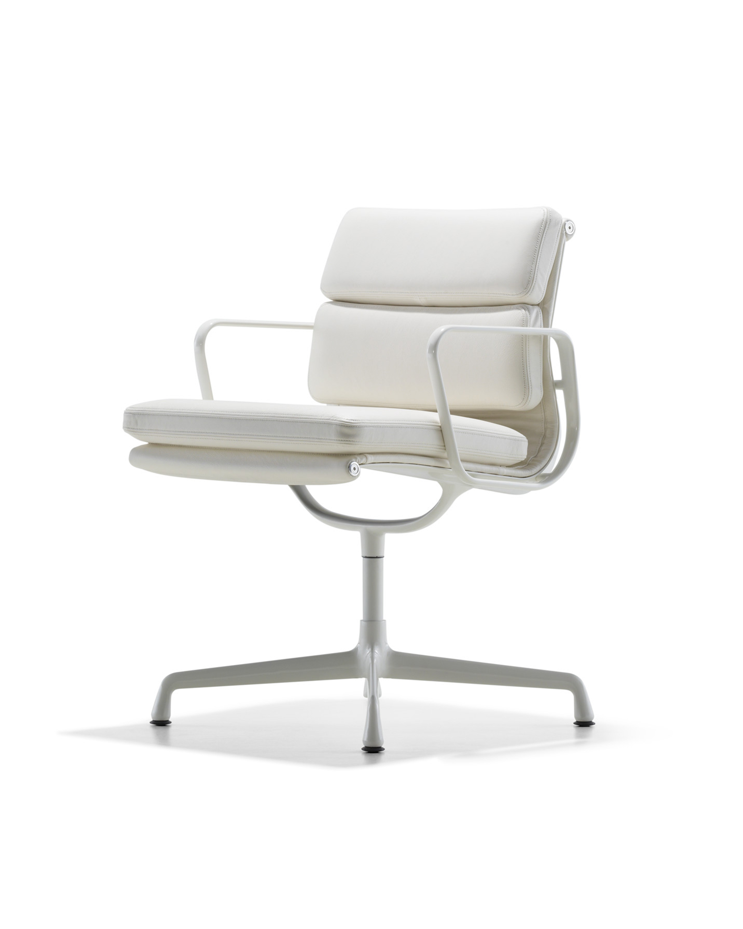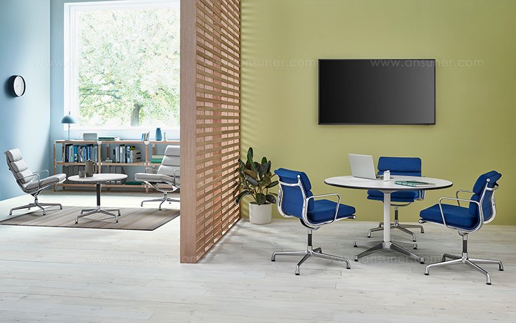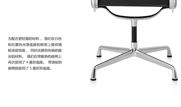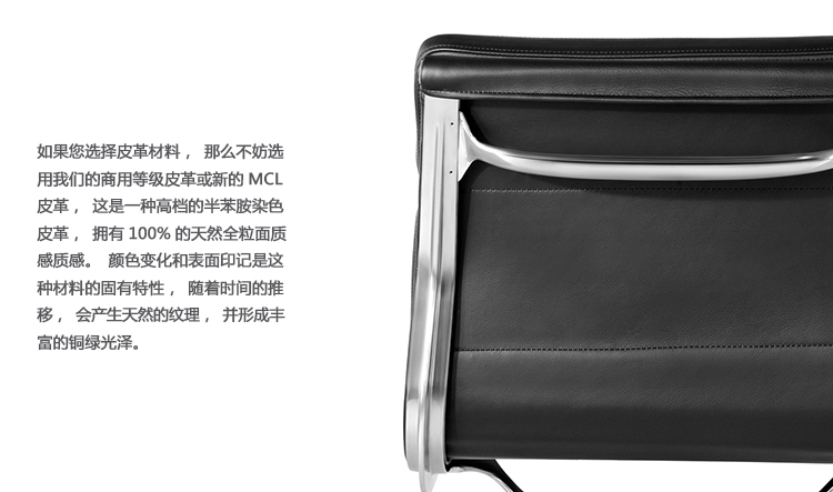 Charles与RayEames夫妇是20世纪最有影响力的设计师,卓越的设计涵盖了家具、建筑、影像与平面设计。他们从二次世界大战中美国海军的实验计画中学习经验并发展可谓是现今工业中使用模铸胶合版的先锋,这对设计界的超级夫妇档自1940年参与了由MOMA举办的有机家具设计大赛,自今已有近百件他们的作品被各大博物馆所永久典藏。 Eames® Soft Pad Side Chair(伊姆斯软包会议椅)是夫妻俩1958年设计的,是在全铝系列的基础上发展的另一系列Eames产品。舒适系列在全铝的椅架上增加了皮革制的柔软坐垫和靠背,高级铝合金制作,压模四星脚,可旋转。背垫和坐垫,采用西皮,具有透气性强,内部填充高密度定型绵,不易变形,不老化,依人体坐姿,符合人体工学,耐水及对人体无害等优势。椅子扶手选用优质电镀铝合金扶手,手感舒适,永久不生锈。转椅底盘为多功能底盘,可以保护使用者长时间坐用腿部健康,且作为高度可多定位调节。气压棒采用的气杆是正规厂家出产的外贸气杆,每一根气杆都有钢印,经过严格SGS检测的才可出厂,旋转、升降自如基本无声响,使用寿命长,可承受250kg,可升降数万次,将椅面调至与膝盖同高时,使用者坐下后双脚跟可垂直平放于地上,且大腿与地面平行,最符合人体工学理论,使用者长期久坐,也不想疲惫。办公椅脚为铝合金材质永久不生锈、承受能力强,安全更放心。椅子脚轮采用优质电镀片脚轮,耐用而美观,可以随意变换位置,贴心更方便,具有防震及防松脱,让椅子的安全性能更加可靠。