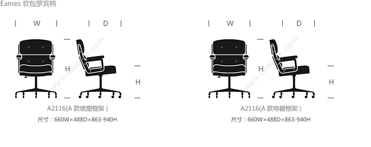 Eames 软包罗宾椅 系列尺寸/示意图