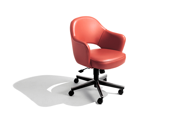 In his groundbreaking collection of 1957,Eero Saarinen transformed executive seating into a fluid,sculptural form.Recognizing the importance of user comfort,Saarinen became the first to construct a chair shell from fiberglass,a pliable material that flexes the In response to body weight.The chair is available with and without very different,and the features metal or wood legs,or a swivel base.The armless chair with a plastic back,ideal for cafe applicatons, is a recent reintroduction.