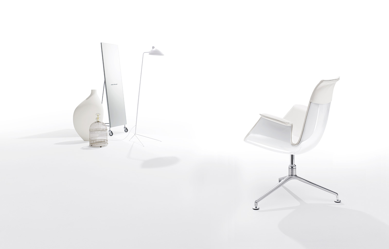 FK(天鹅椅)由北欧著名设计师Fabricius 和 Kastholm设计的,著名家具公司walter Knoll出品,是设计历史的经典作品。在六十年代,斗式座椅是当时的一种标志,FK(天鹅椅),以其独特的形式,清晰的轮廓,完美的线条,堪称设计经典。铲斗造型的三星脚架、 体积大和亮度度,都是FK(天鹅椅)引人注目的标志。在1969年FK(天鹅椅)荣获了《Gute Form》(好形状)奖最佳风采奖,并成为了极简主义设计中的一个典范,流行至今。