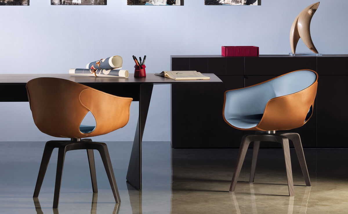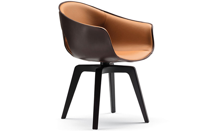 柔软的皮革外壳,舒适和保护。一个精致和简单的安乐椅。整齐的,必要的,舒适的。罗伯托-拉泽罗尼设计的姜椅既是一个自然的伴奏弗雷德办公桌,并作为一个单独的座位。旋转的版本是完美的一个研究领域,而固定的模式是理想的餐桌。有一个在设计,用料和做工姜椅和弗雷德之间的引用的持续发挥。姜椅的框架是在特殊的刚性,高密度,低厚度,模塑聚氨酯。深棕色或骆驼:它完全在两个变体涵盖5毫米厚的鞍皮革外,单层。所述框架的内表面覆盖在佩尔Frau®颜色系统中创建色彩和材料之间有吸引力的对比。技术娴熟的皮件也可以看出,在珍贵的细节,例如沿外边缘运行可见明缝,形成一个优雅的装饰效果。座位塞满了聚氨酯泡沫。该基地有四条腿的鸡翅木色固体的白蜡木用三角轮廓。用于固定帧的支持是在黑色涂钢和旋转模型允许一个360°的旋转。