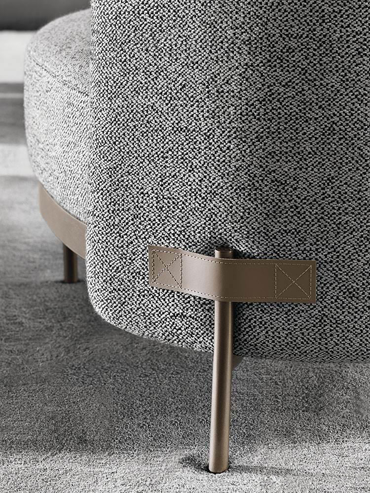 这条带子的名字来自于高级定制服装的细节,它被设计成一条丝带,用来固定浅青铜色的金属脚。