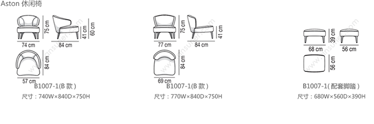 Aston 休闲椅 系列尺寸/示意图