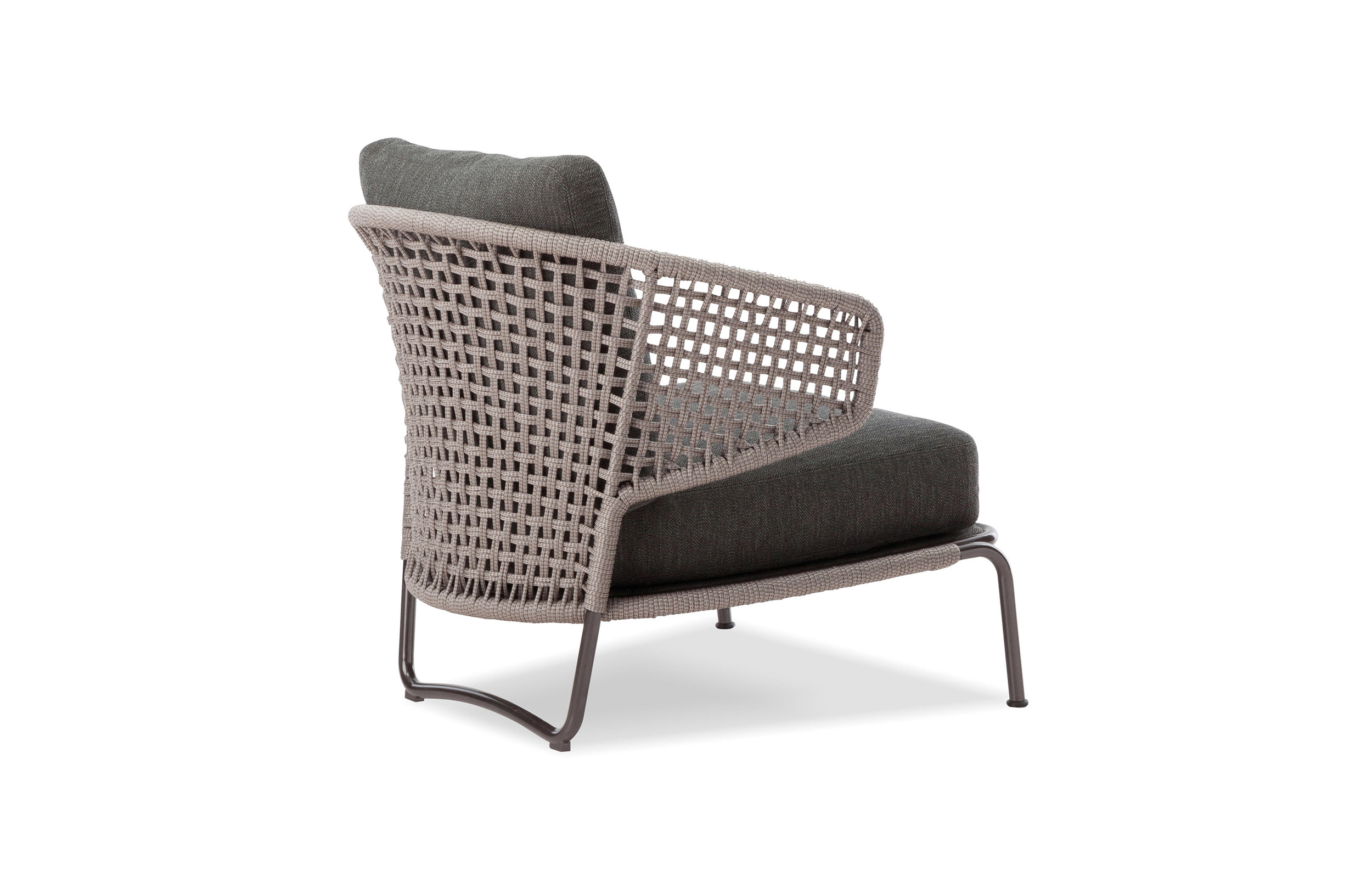 阿斯顿和阿斯顿 “绳”:两者拥有同样的设计内涵和共同的美学语言,和谐的线条和精简的造型可以打造极具创意的室内设计项目,室外和室内环境之间的连续性和统一的风格是其特点所在。阿斯顿 “绳” 室内扶手椅通过不同的材质来重新诠释设计理念。构架为金属材质,表面为Pewter色漆面,靠背采用直径为7毫米的特殊聚丙烯纱线编织而成,有两种颜色可供选择:浅灰色和深棕色。阿斯顿 “绳”室内扶手椅推出了有扶手和无扶手的两个版本,通过清新休闲的造型,可以打造出别具创意的室内和室外互动效果。