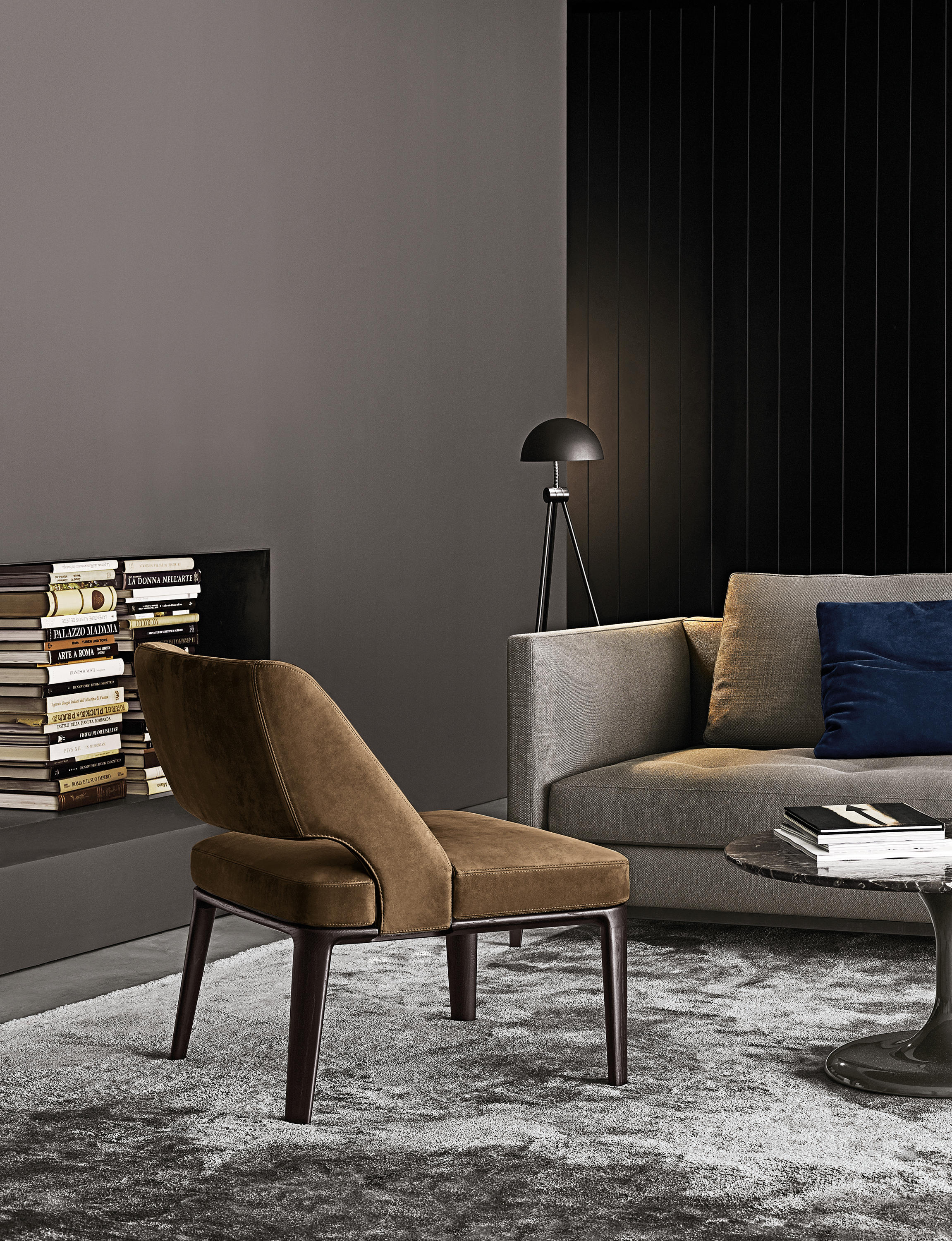 欧文斯座椅与家族中同名的扶手椅一样,将当代设计的精髓与传统的积淀融合在一起,以自身的技术诀窍为基础,体现出展望未来的特质。座椅除了有充满经典风情的Moka色白蜡木版本可供选择以外,还有令人眼花缭乱的设计方案,椅腿可以采用Pewter色漆面的铸铝材质,搭配Minotti Studio独家设计的色调。