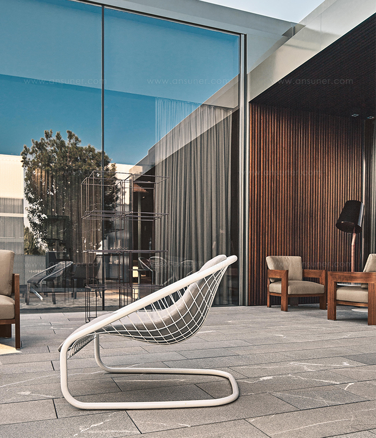 金属网的结构十分轻盈,似乎是要挑战地心引力,产品用途十分广泛,可以与Minotti系列的所有沙发搭配,呈现丰富多彩的组合形式。