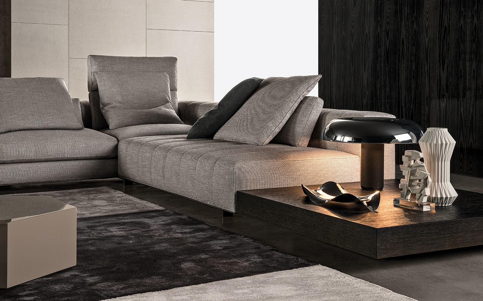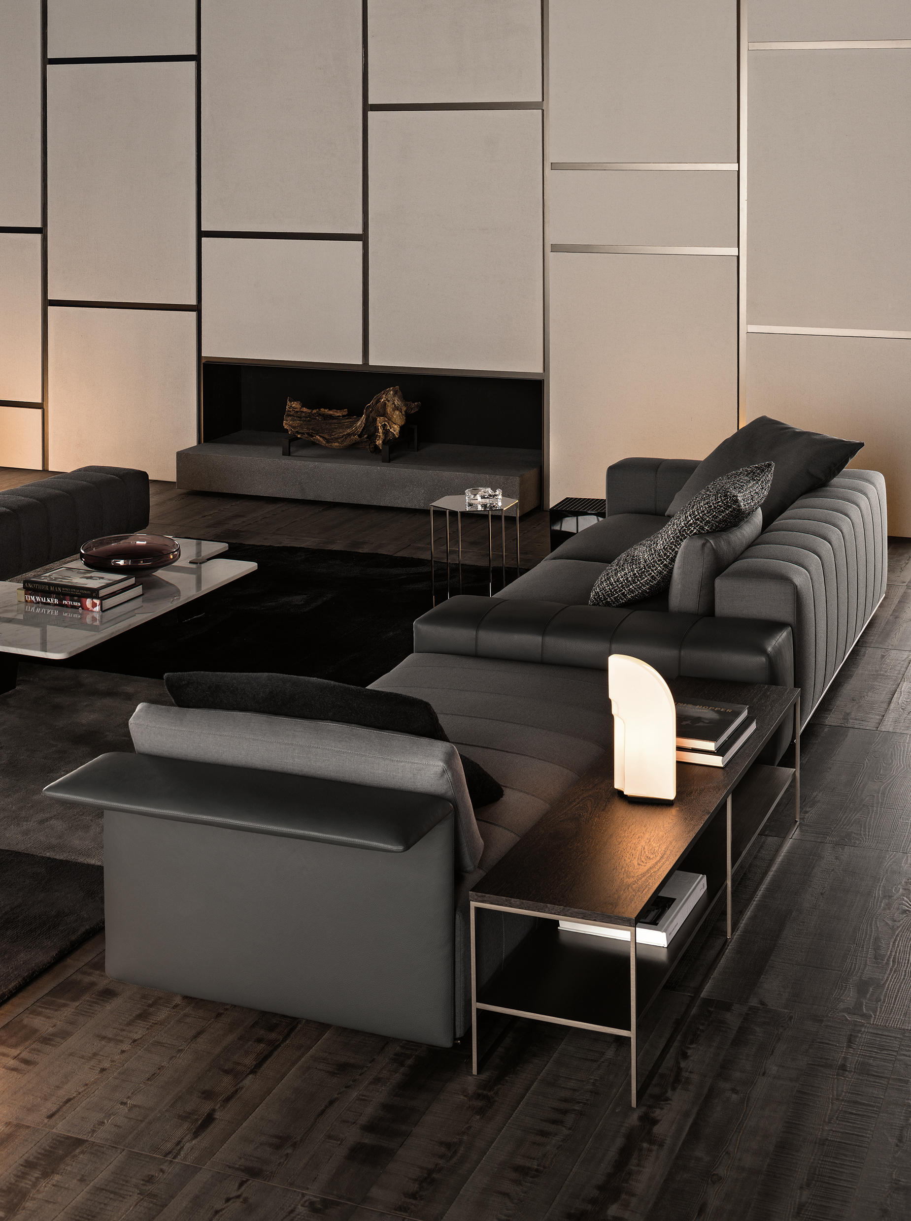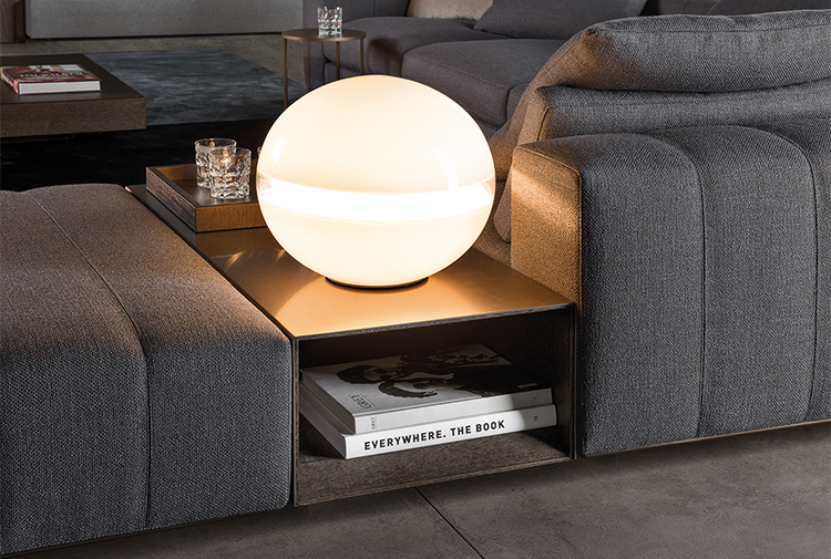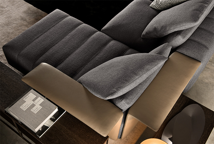 弗里曼“裁缝”项目的理念和原创性在其衍生系列弗里曼“休息室”中也有所体现。弗里曼“休息室”沙发纵深度有所降低,不仅更易搭配较小的居住空间,还可以用在接待场所,如等候室、前台区域、行政办公室。单组沙发的特点在于采用规则图形纹样的优雅缝线设计,可以自由随性地组合沙发,打造灵动的造型。“Wing”扶手拥有轻盈的线条,这要得益于采用聚氨酯为基材的泡沫金属框架。精致的包覆材料展现出公司运用复杂面料进行剪裁加工的实力。皮革和织物面料的各个部件通过浅铜色人造皮革束带和双缝线工艺连接在一起,打造出独特的纵深效果。