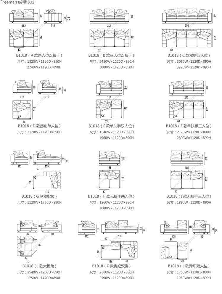 创意家具 - 坐具|沙发|办公家具|设计师家具|弗里曼绒毛沙发